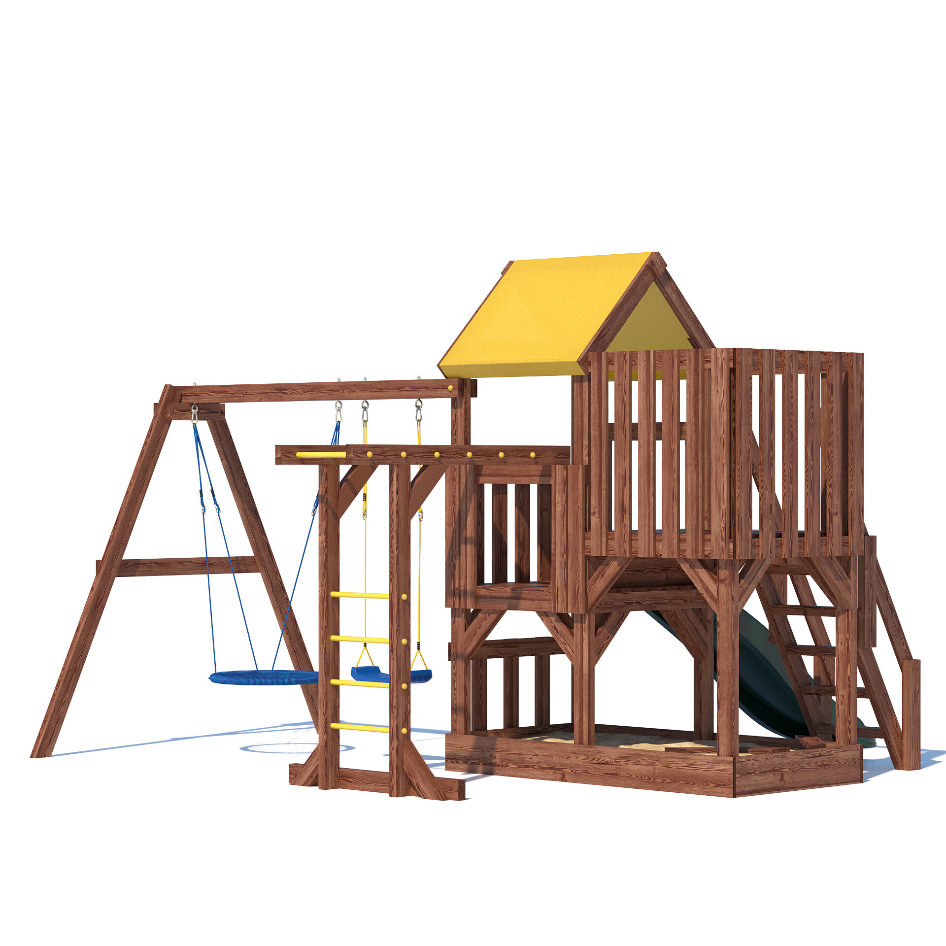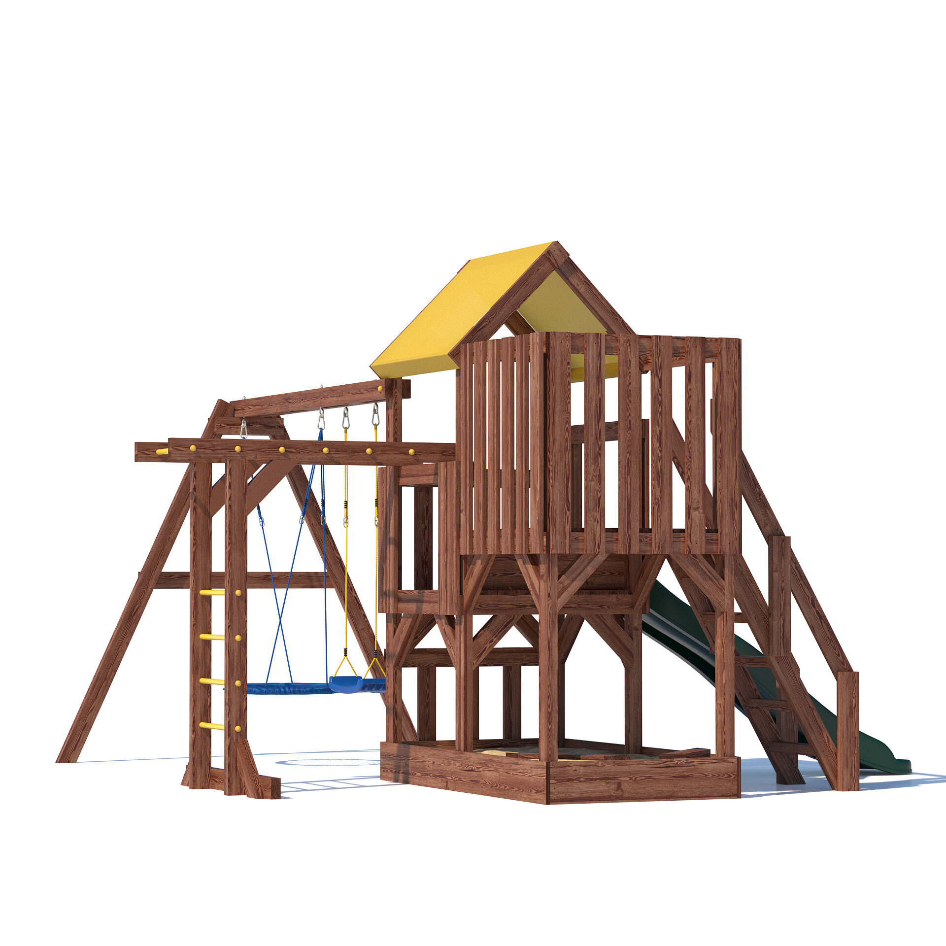Купить Деревянная детская игровая площадка CustWood Junior Color JC5 - безопасный и комфортный игровой спортивный комплекс / домик / площадка для дачи
