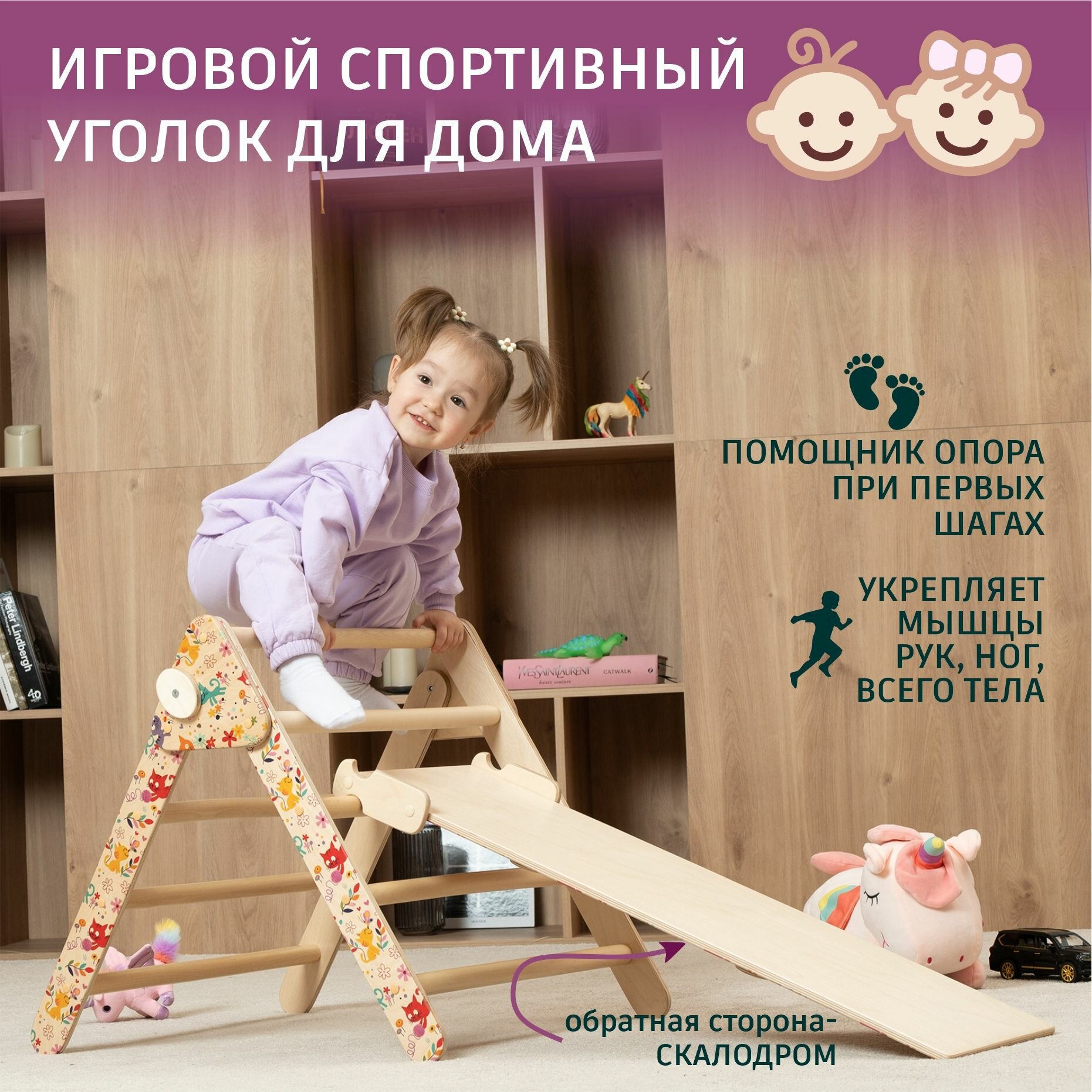 СохранитьТреугольник Пиклер с горкой+скалодром "Пиклер LAB", лакированный с цветным рисунком, детский спортивный развивающий комплекс для дома, игровой уголок для детей интересное: