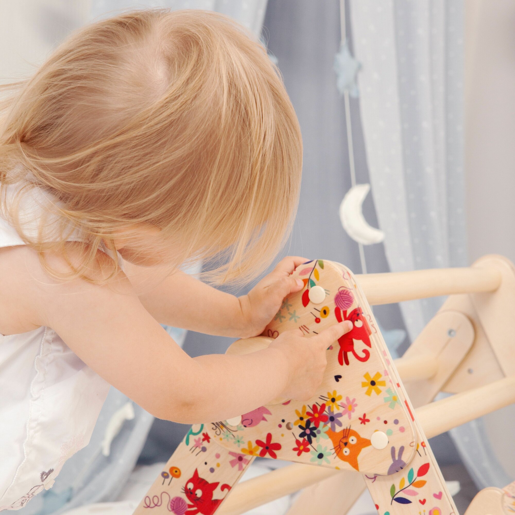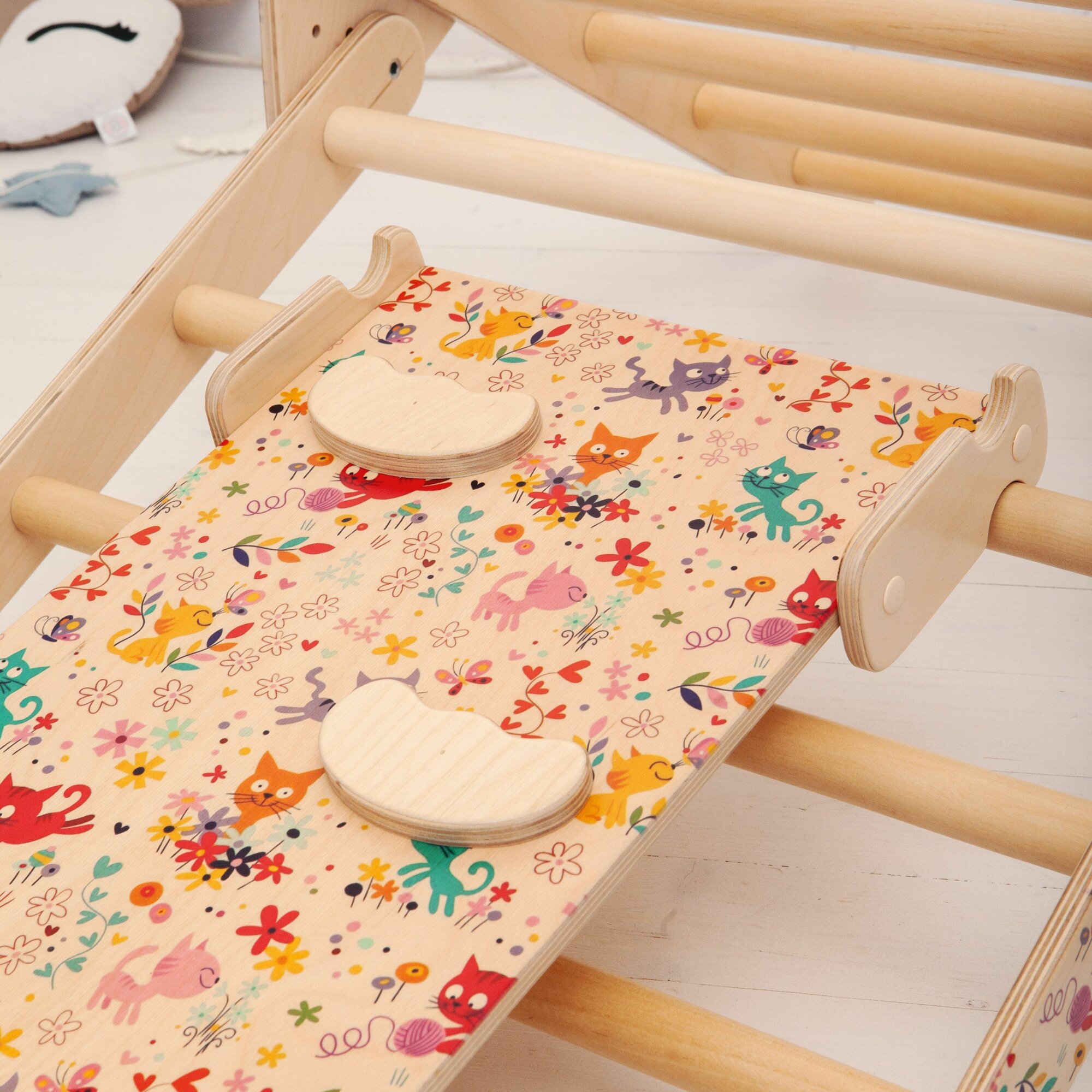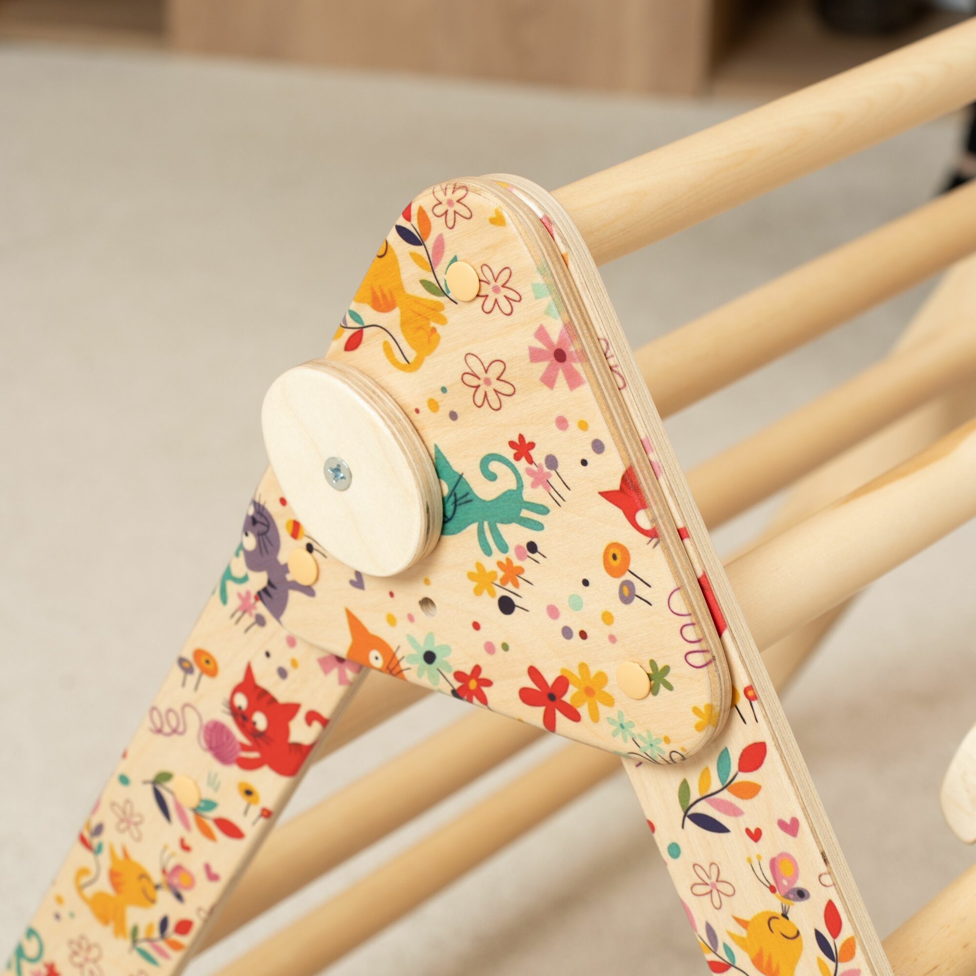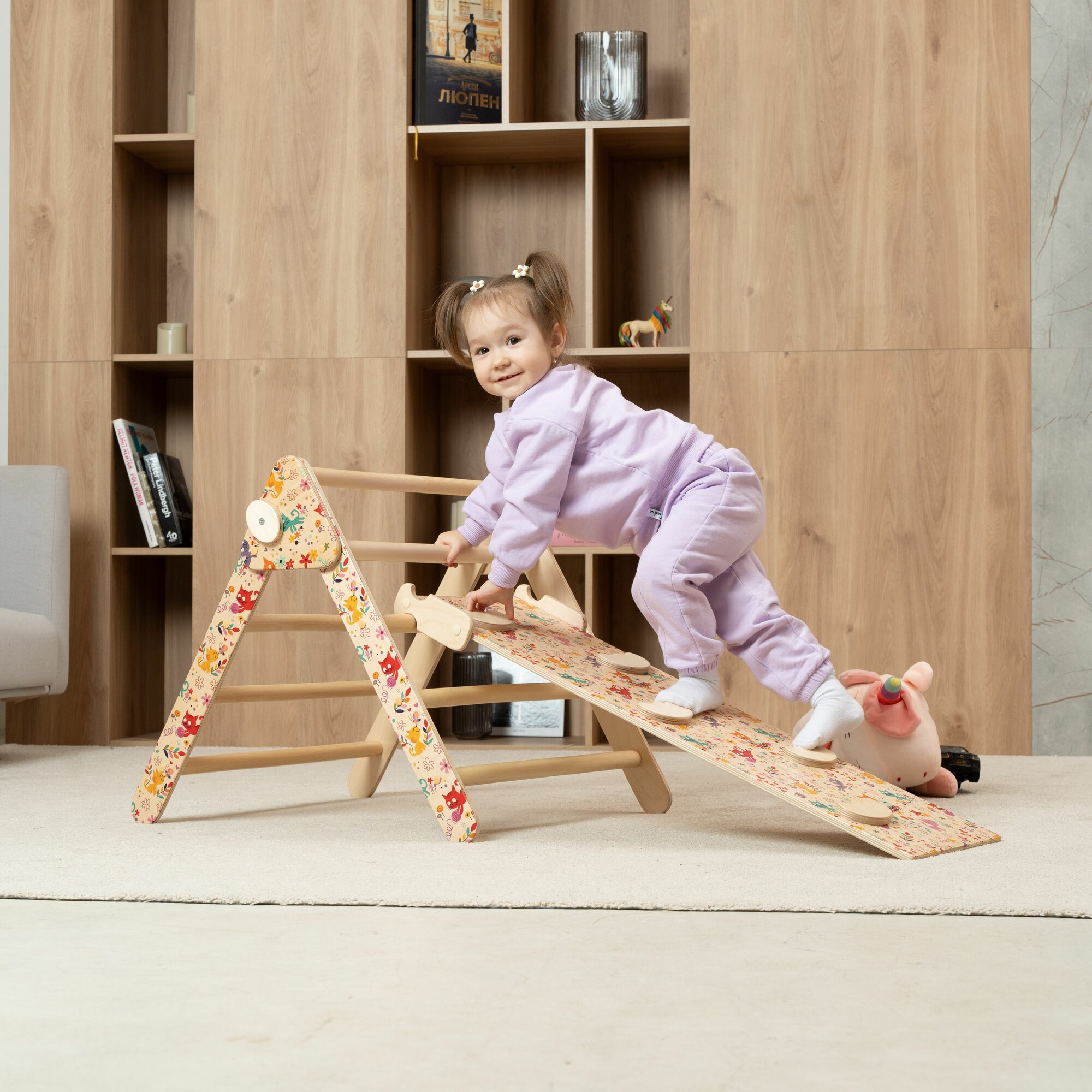 Купить Треугольник Пиклер с горкой+скалодром "Пиклер LAB", лакированный с цветным рисунком, детский спортивный развивающий комплекс для дома, игровой уголок для детей