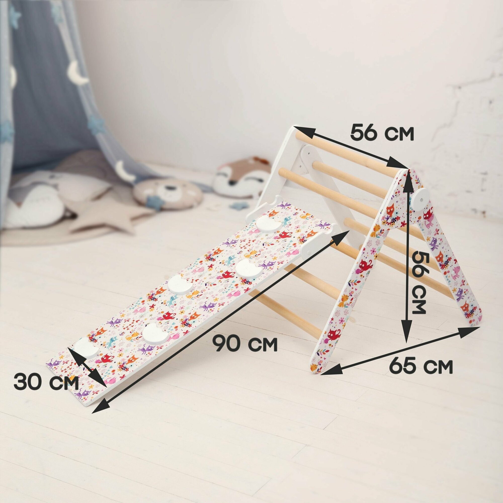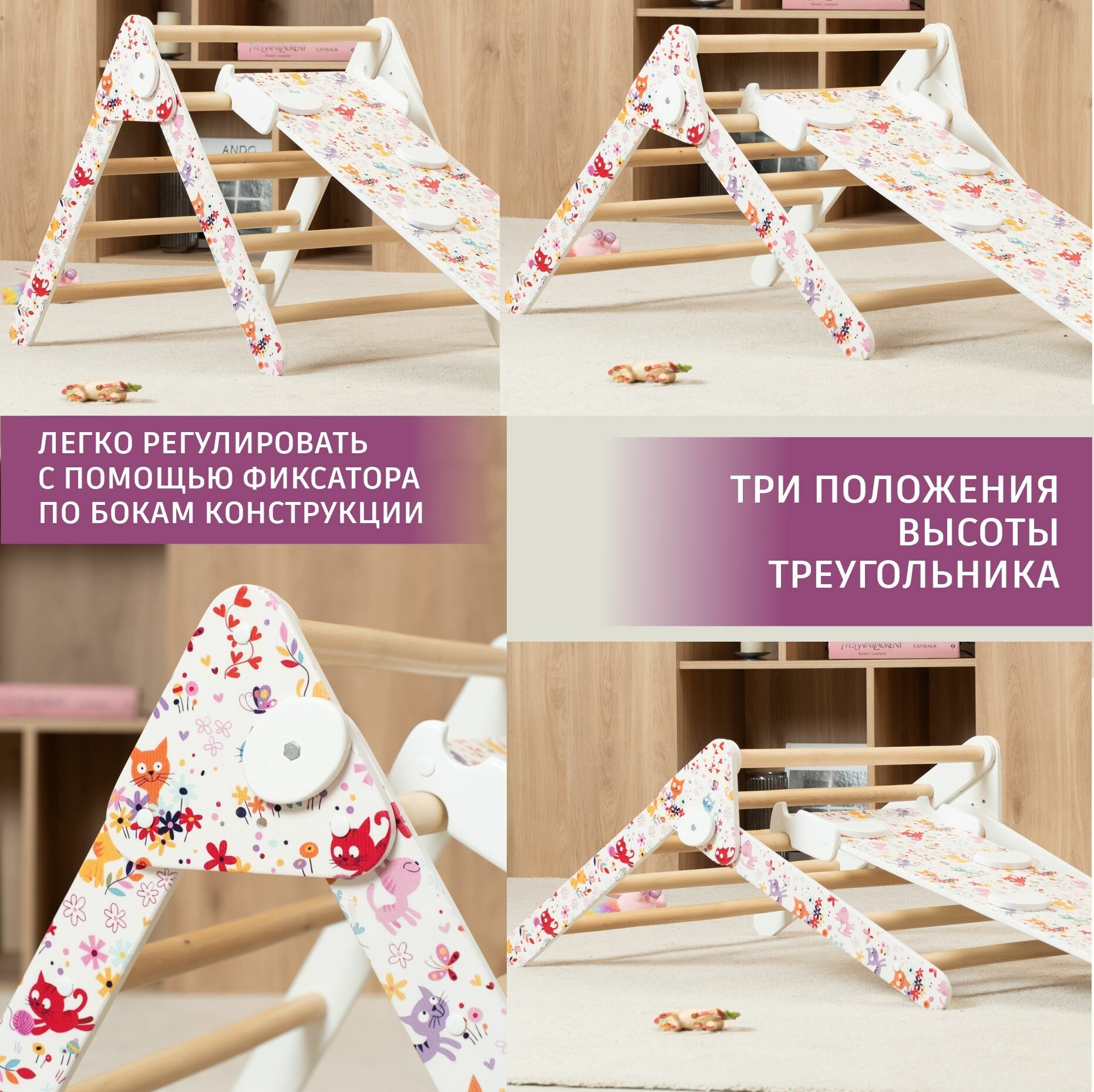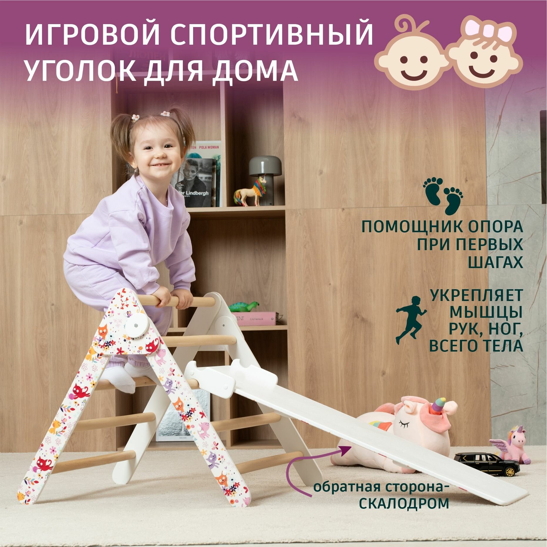 Треугольник Пиклер с горкой+скалодром "Пиклер LAB" с покрытием белый "Ромашки", детский спортивный развивающий комплекс для дома, игровой уголок для детей
