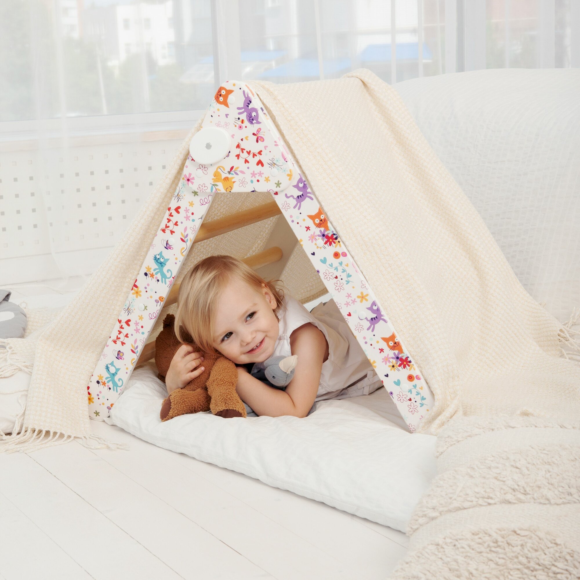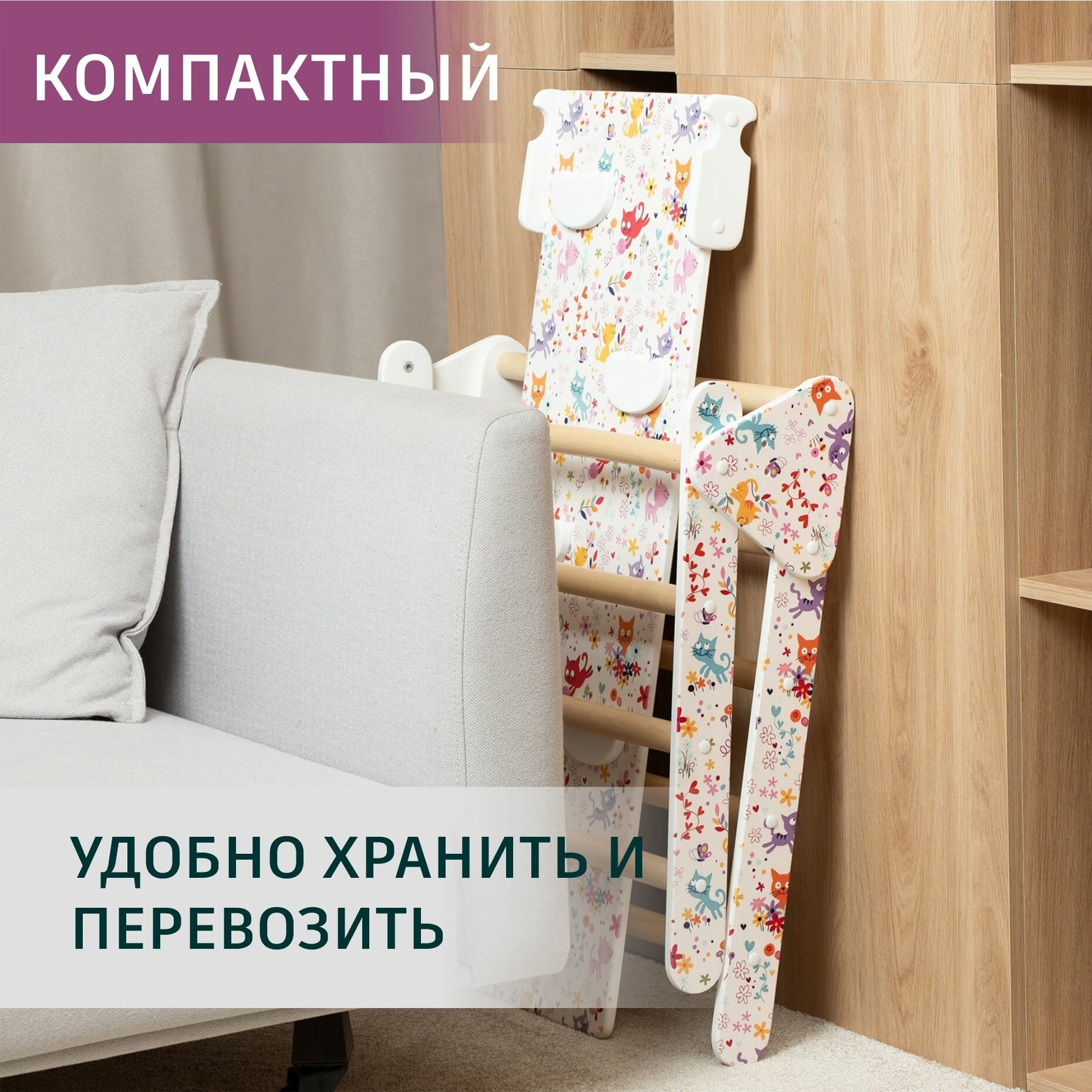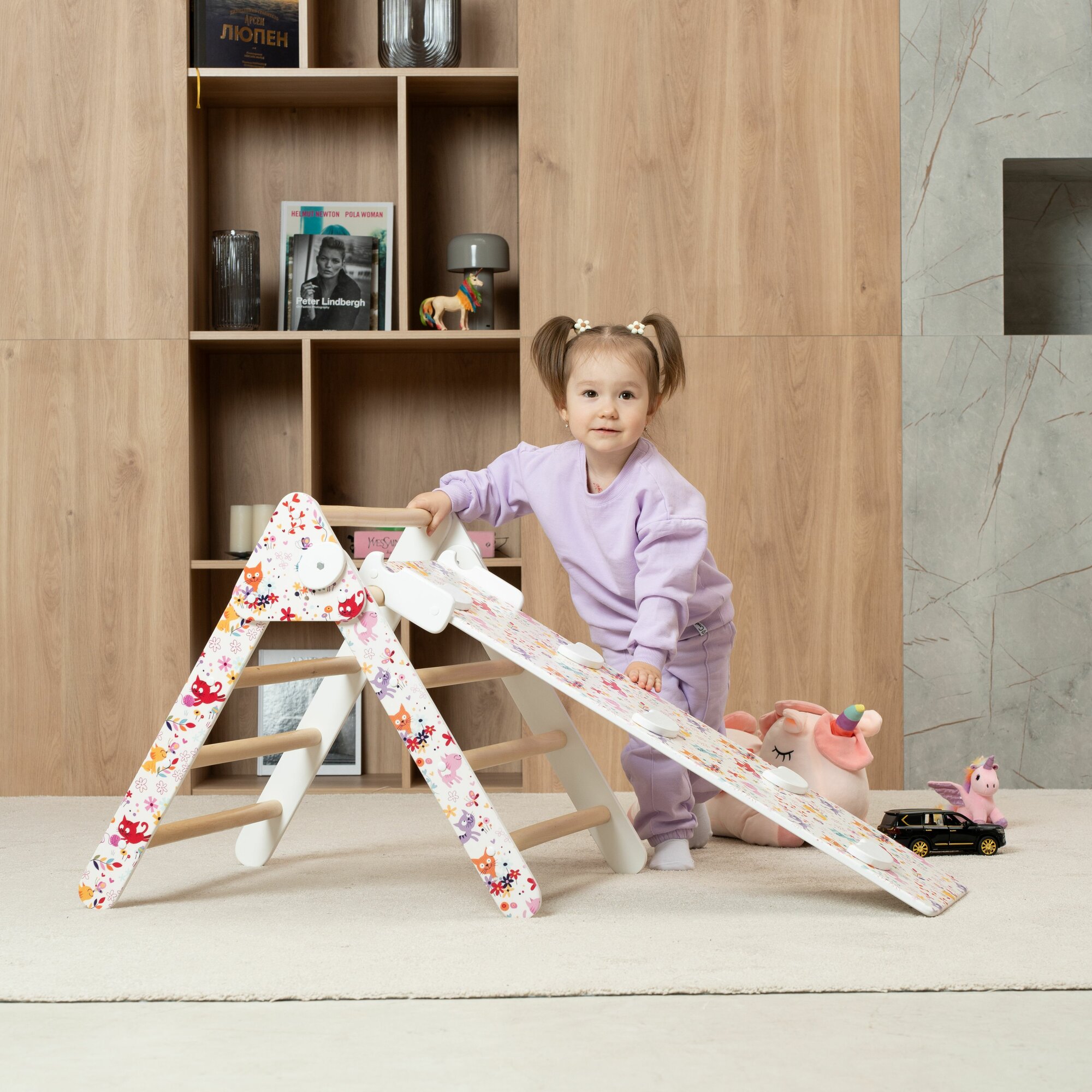 Треугольник Пиклер с горкой+скалодром "Пиклер LAB" с покрытием белый "Ромашки", детский спортивный развивающий комплекс для дома, игровой уголок для детей