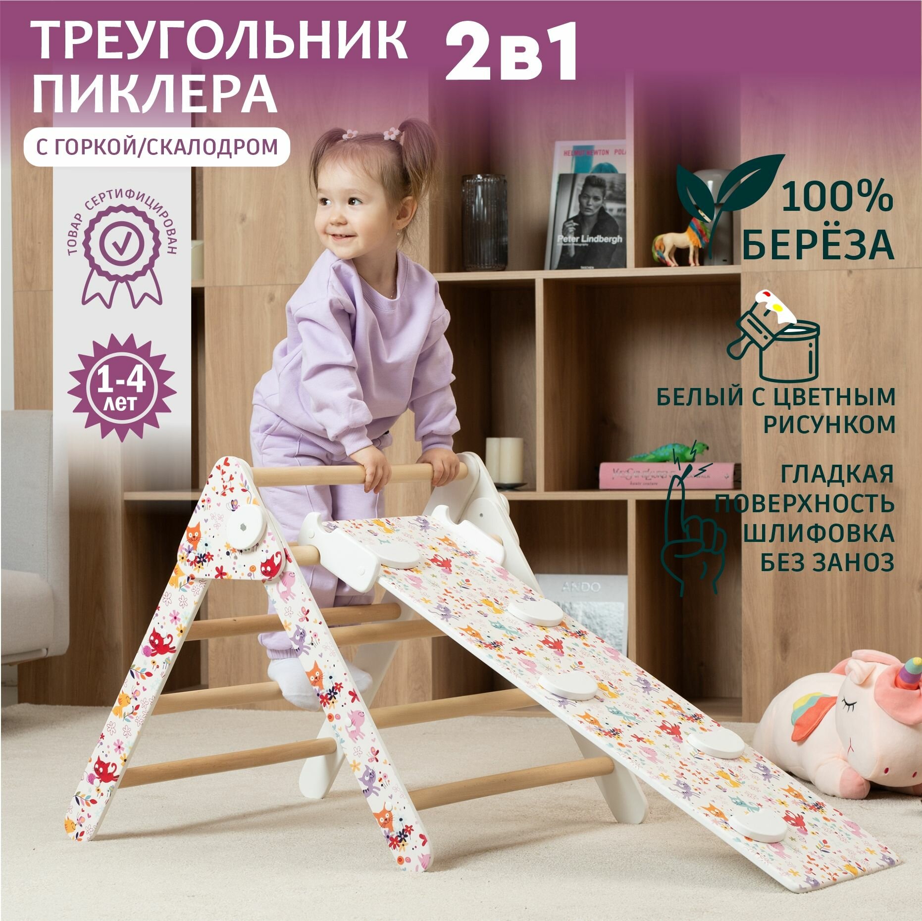 СохранитьТреугольник Пиклер с горкой+скалодром "Пиклер LAB", белый с цветным рисунком, детский спортивный развивающий комплекс для дома, игровой уголок для детей интересное: