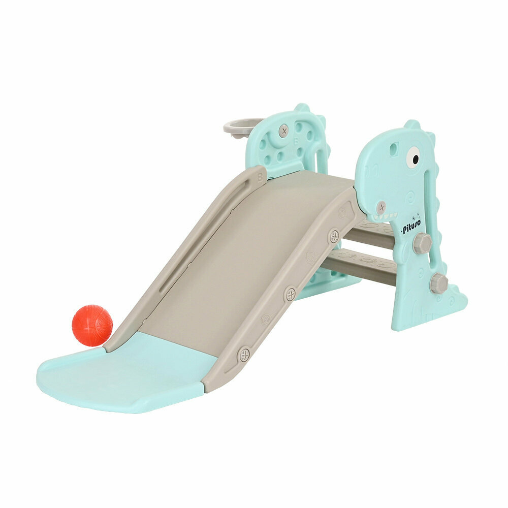 Купить Детская горка Pituso с баскетбольным кольцом Веселый Динозаврик Green/Зеленый