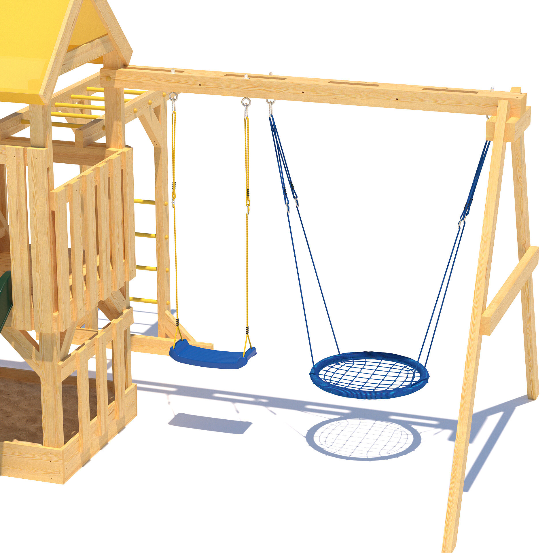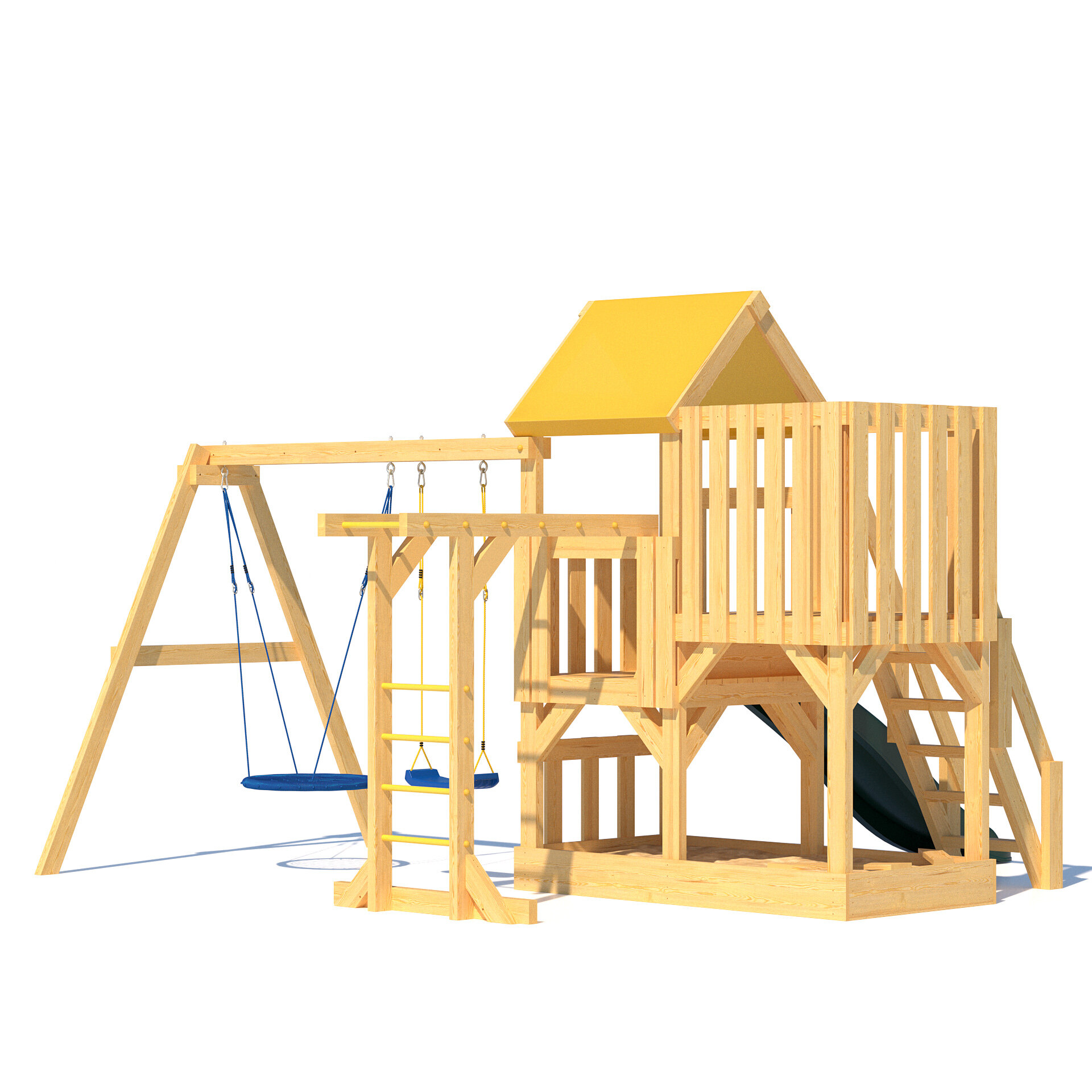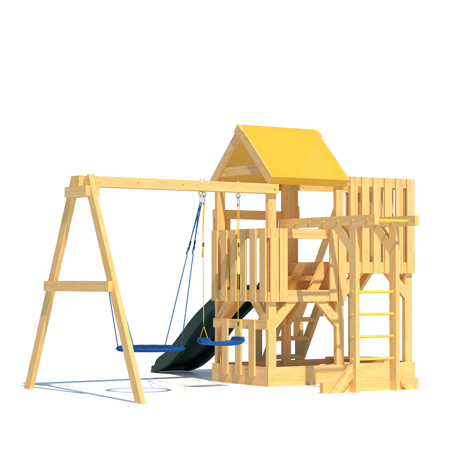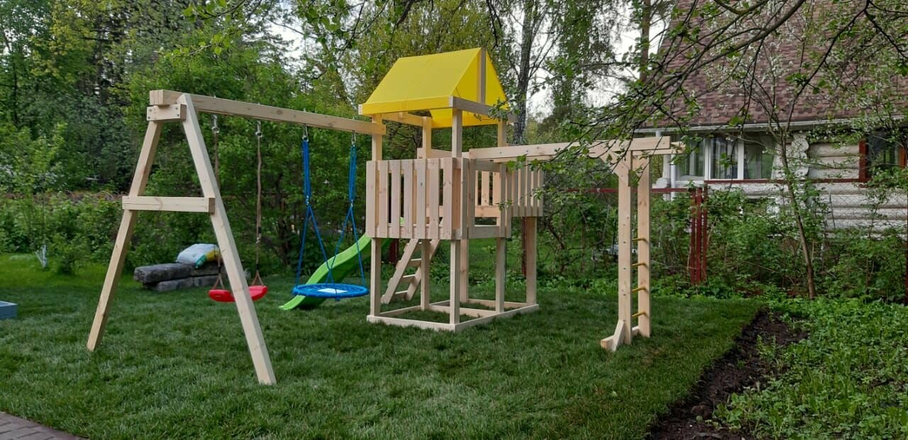 | В комплекте | домик, качели, лестница, рукоход |