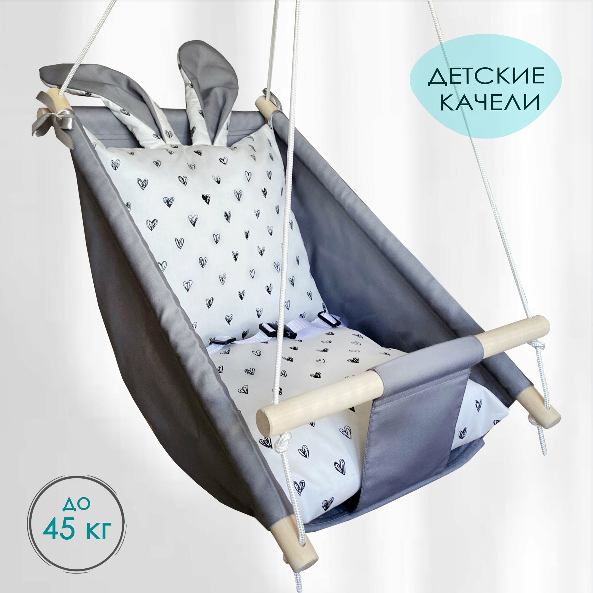 Купить Детские подвесные качели-шезлонг+сердечки с ушками