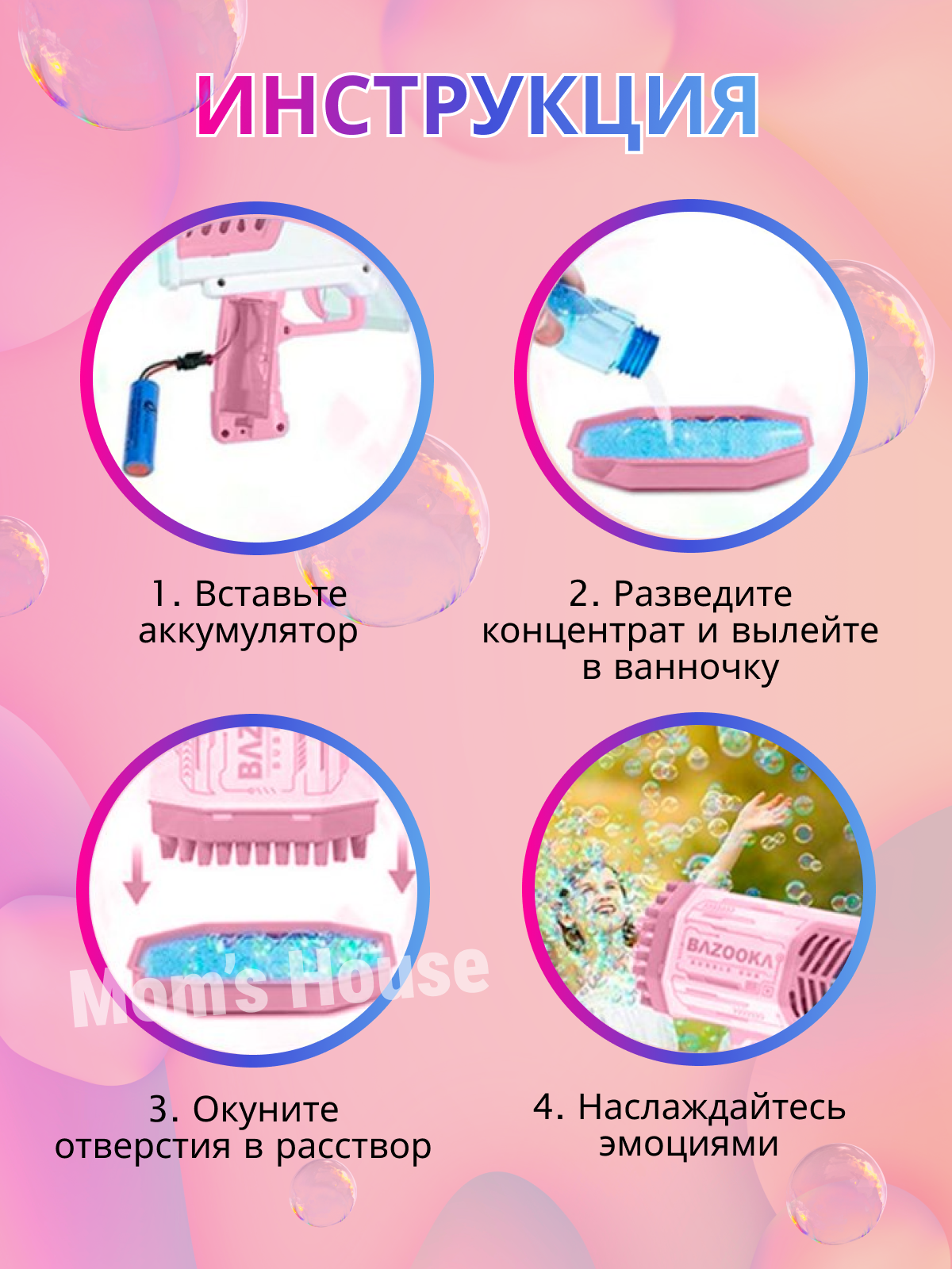Пистолет генератор для мыльных пузырей на аккумуляторе детский большой светящийся интересное: