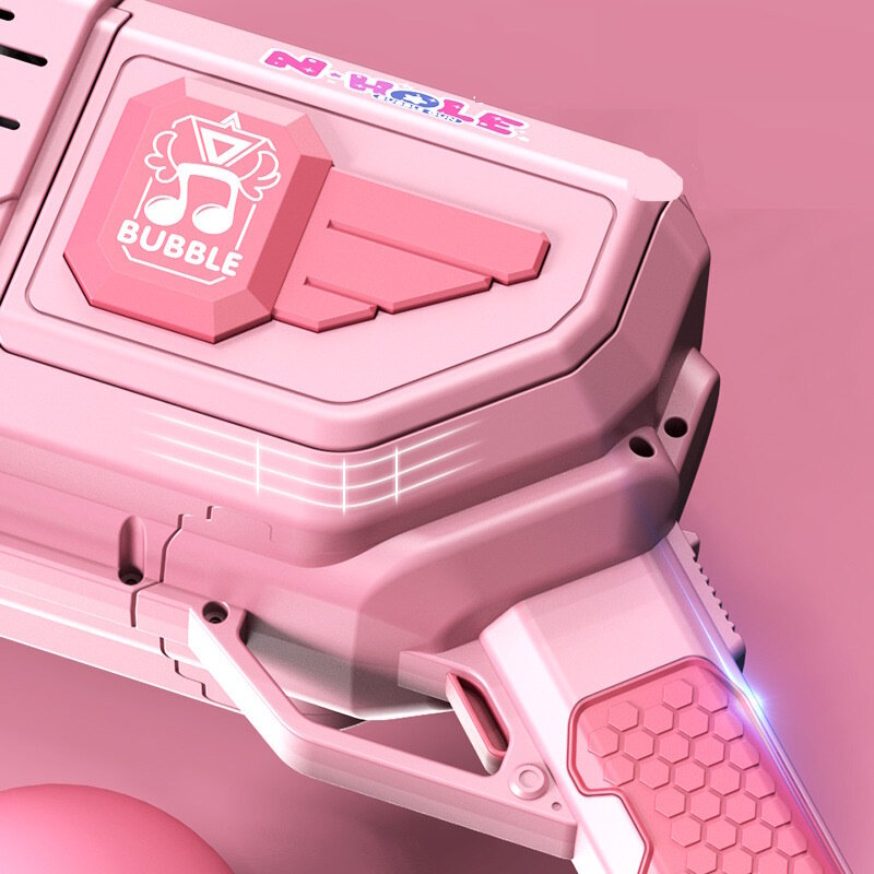 Генератор мыльных пузырей автоматический пистолет Космический Бластер Space Bubble Gun/Непрерывный поток, большой объем резервуара, подсветка/Розовый