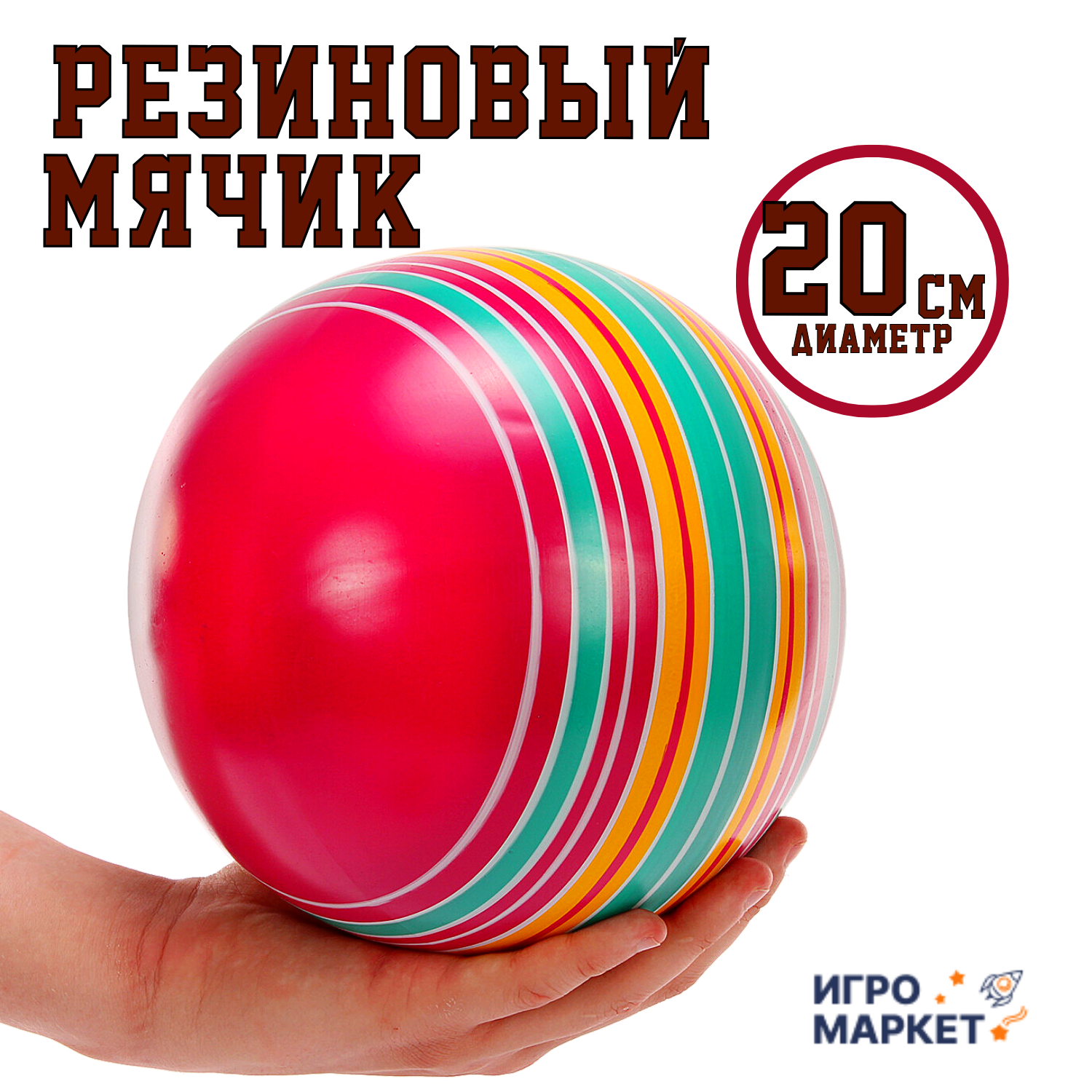 Купить Мяч детский спортивный 20 см "Полосатики", резиновый, возраст 1+, для игр в помещении и на улице, ручное окрашивание, НЕ требует накачки, в надутом виде, легкий, прочный, для девочки и для мальчика / 1 шт