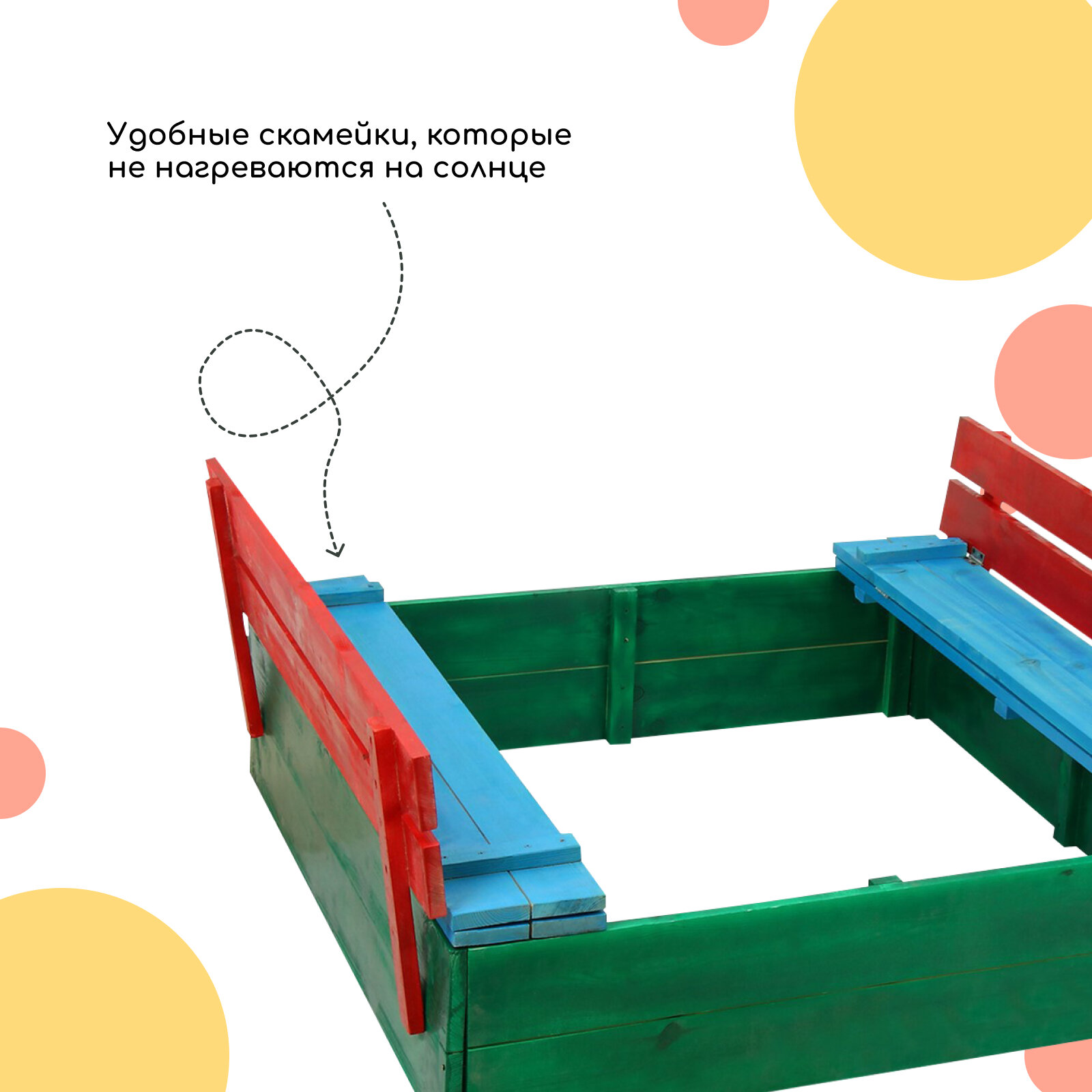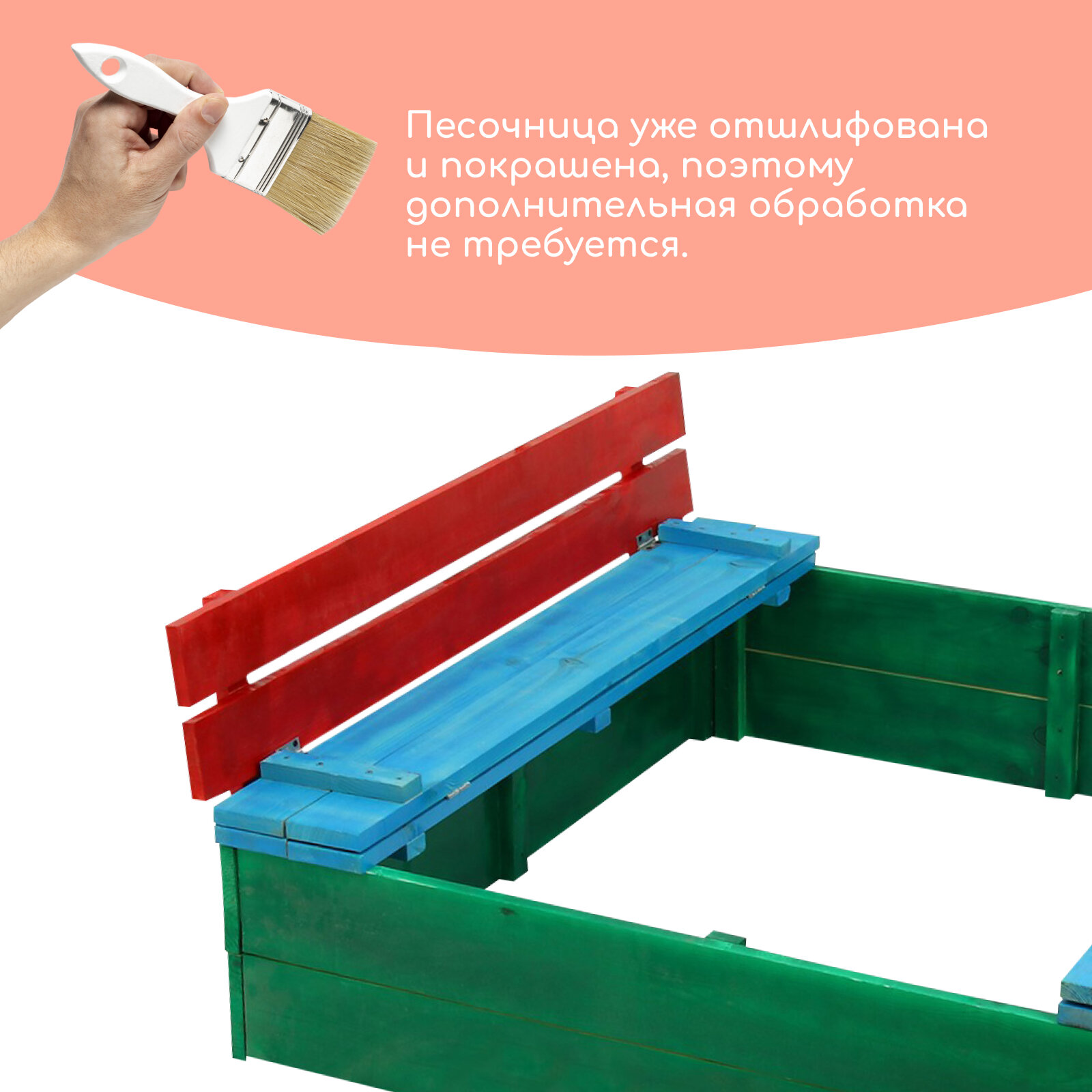 Песочница деревянная, с крышкой, 130 × 130 × 52 см, сосна, крашеная интересное: