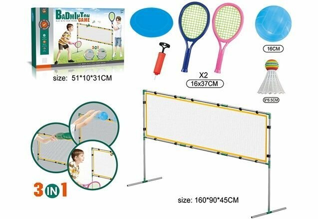 Купить Набор 3 в 1 для игры в бадминтон, волейбол, летающая тарелка ( сетка, ракетки, тарелка , мяч и воланчики.