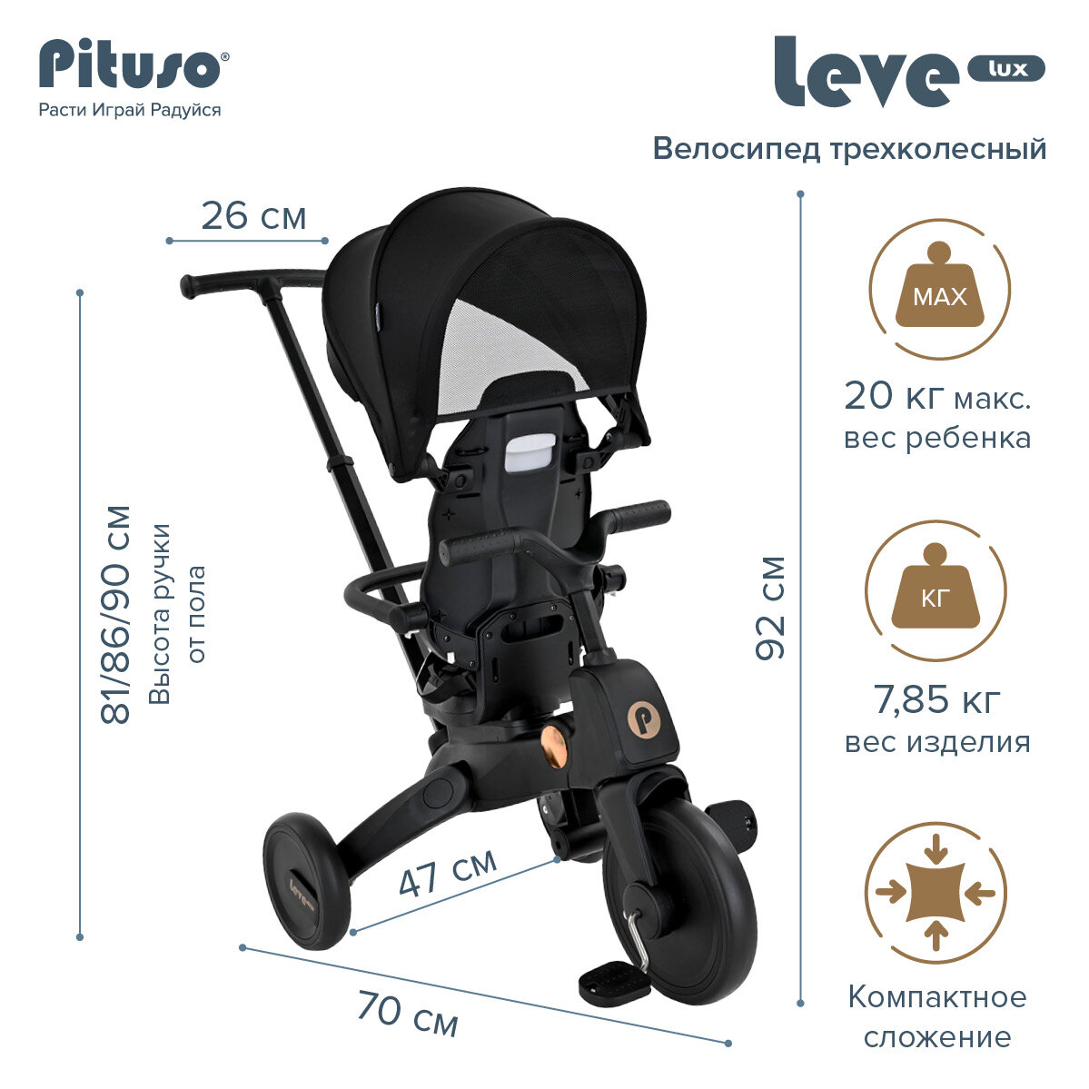 Купить Велосипед детский Pituso Leve Lux трехколесный складной, Black/Черный