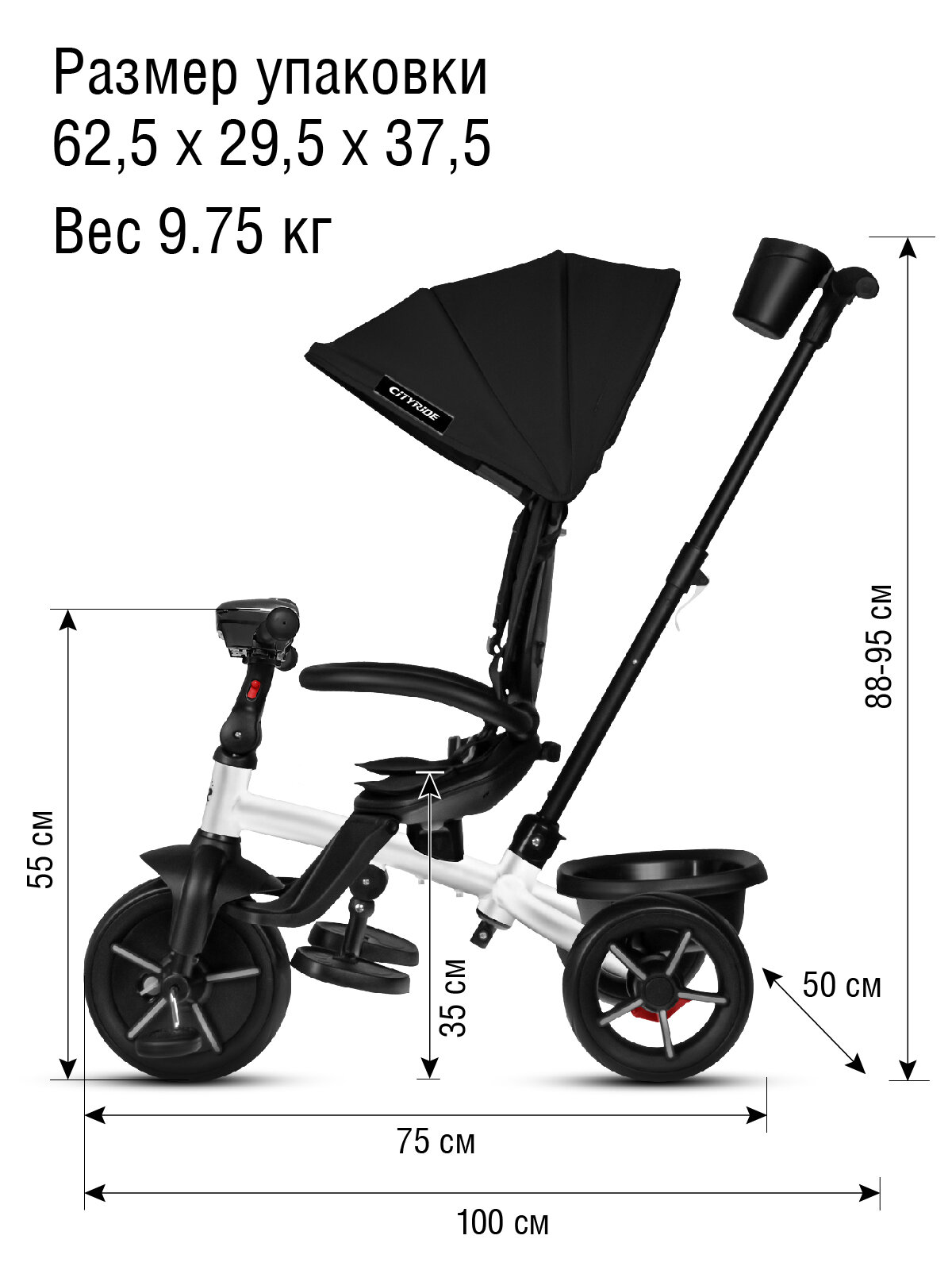 Велосипед детский трехколесный ТМ CITYRIDE XTERRA, складная крыша, колеса EVA 11"/9", CR-B3-12BL