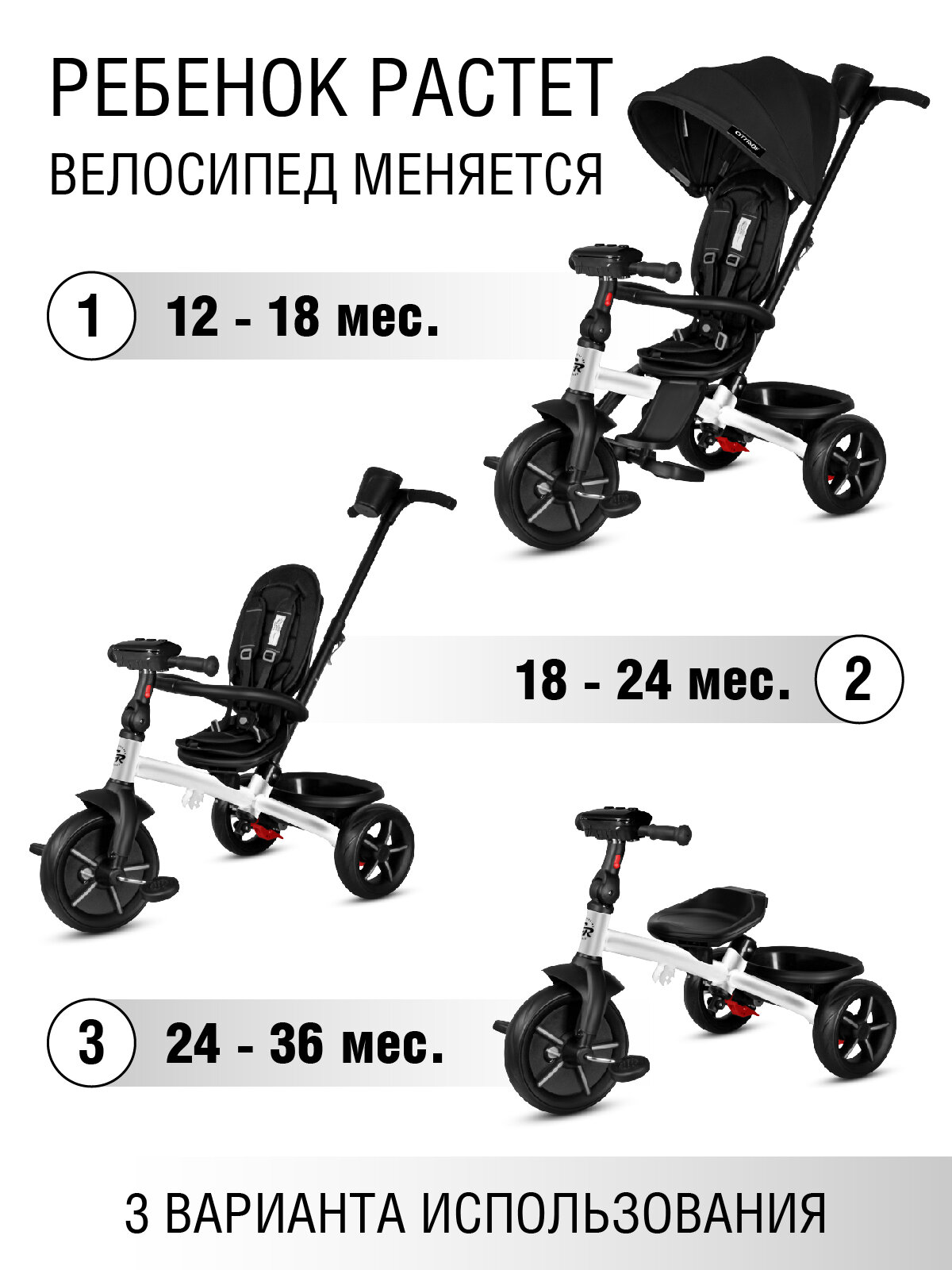 СохранитьВелосипед детский трехколесный ТМ CITYRIDE XTERRA, складная крыша, колеса EVA 11"/9", поворотное сиденье 360◦, CR-B3-12WT интересное: