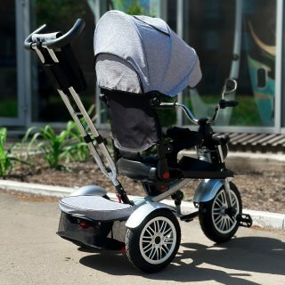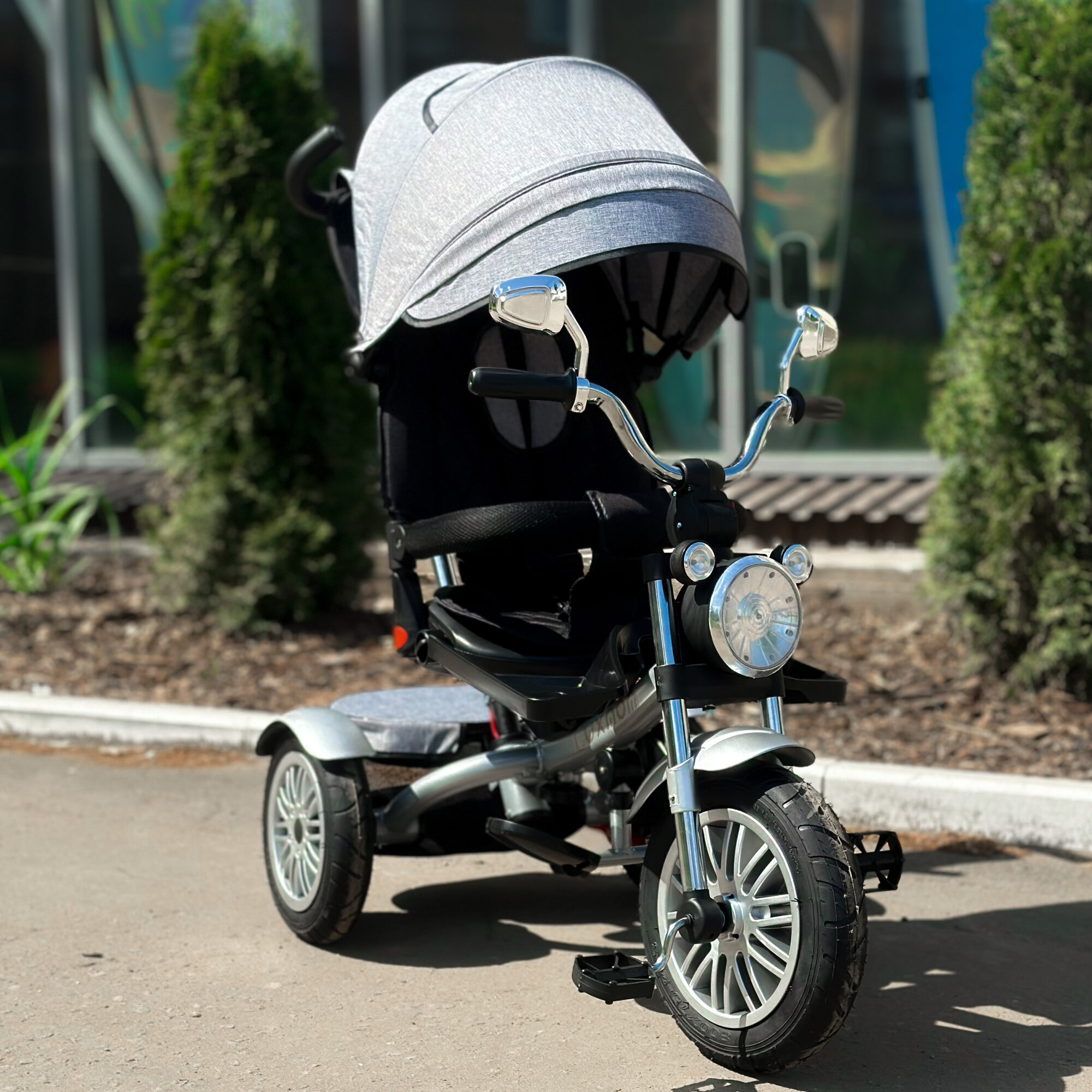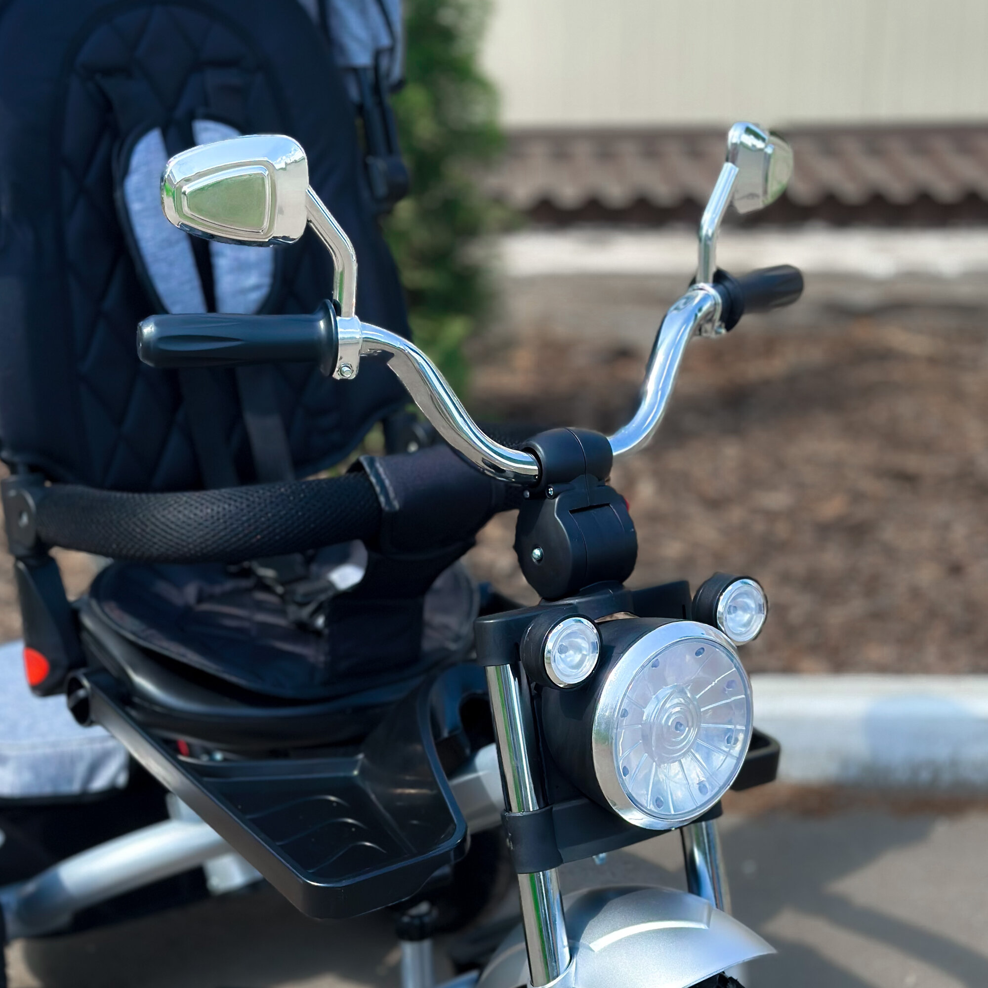Детский трехколесный велосипед-мотоцикл Chopper LUXMOM ORIGINAL 5199 с поворотным сидением, серый интересное: