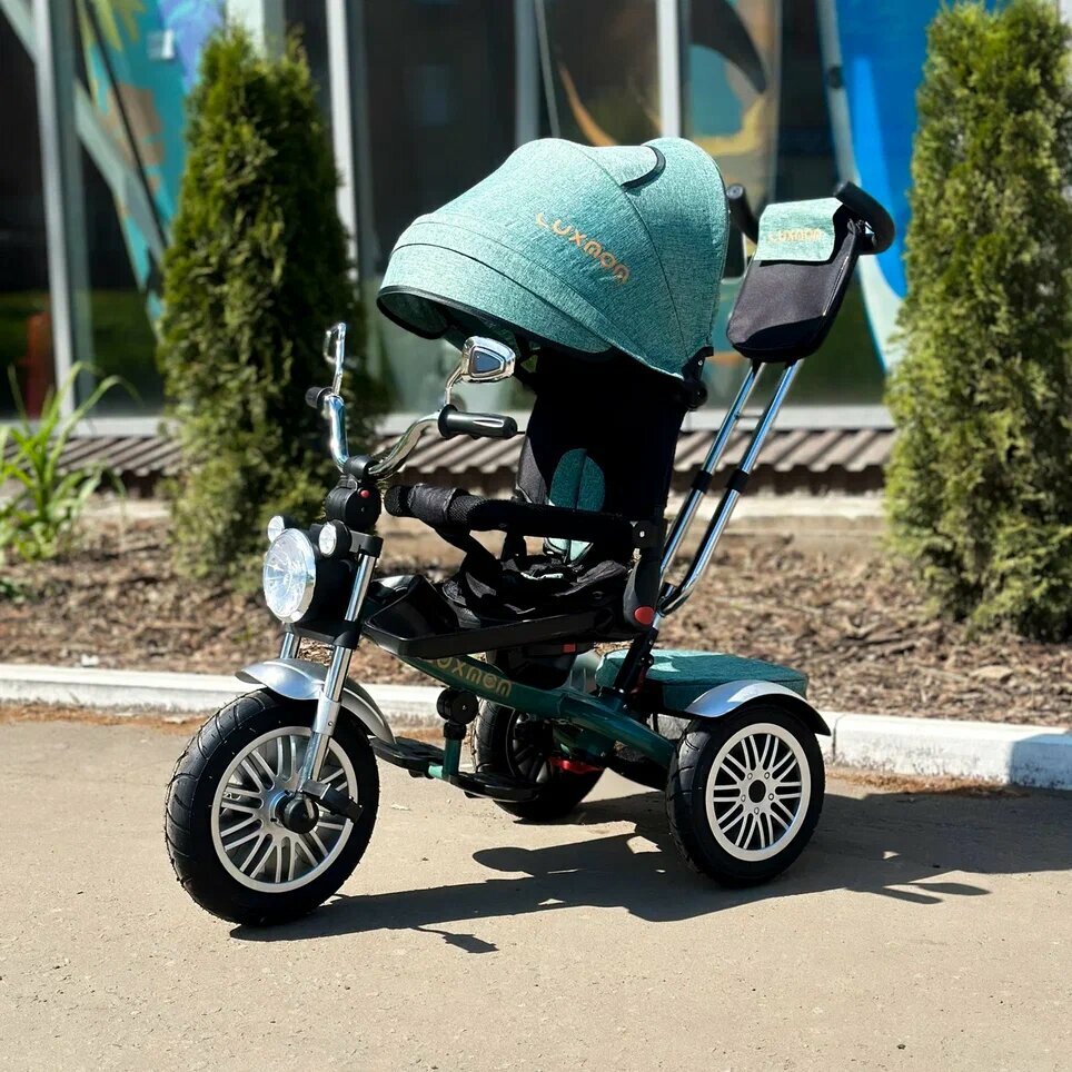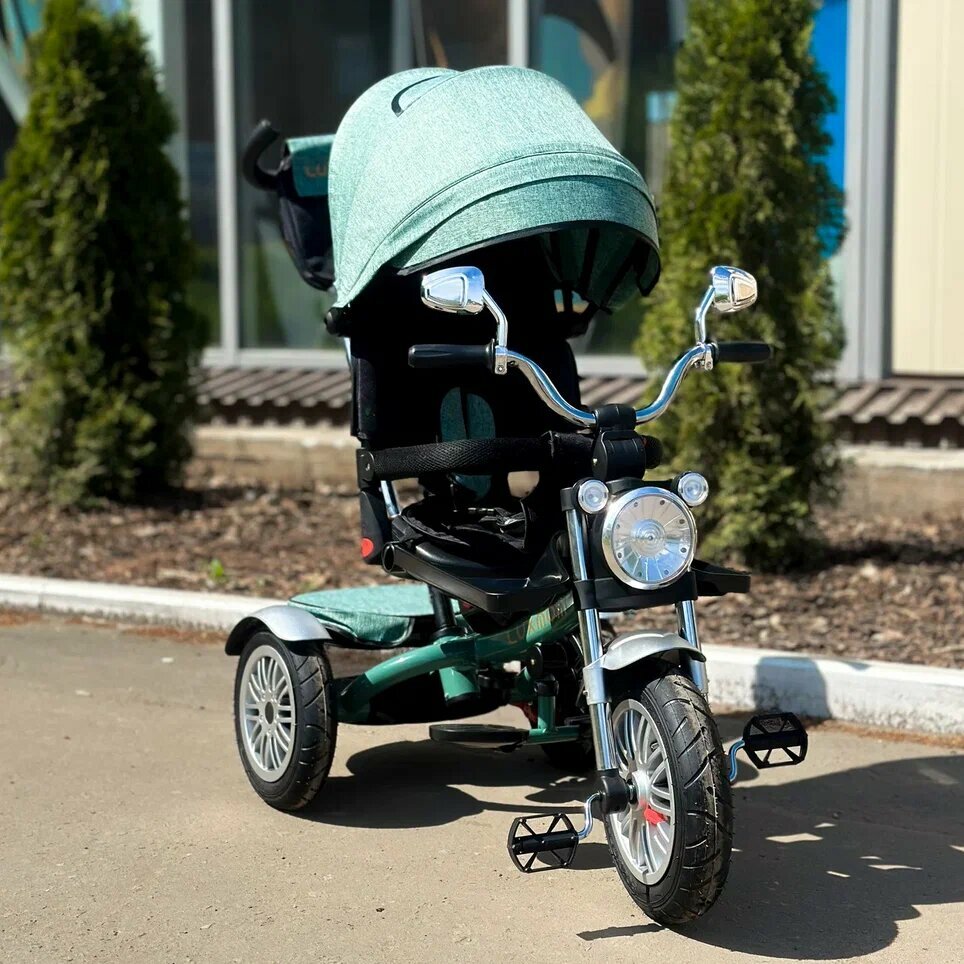 Детский трехколесный велосипед-мотоцикл Chopper LUXMOM ORIGINAL 5199 с поворотным сидением, зеленый интересное: