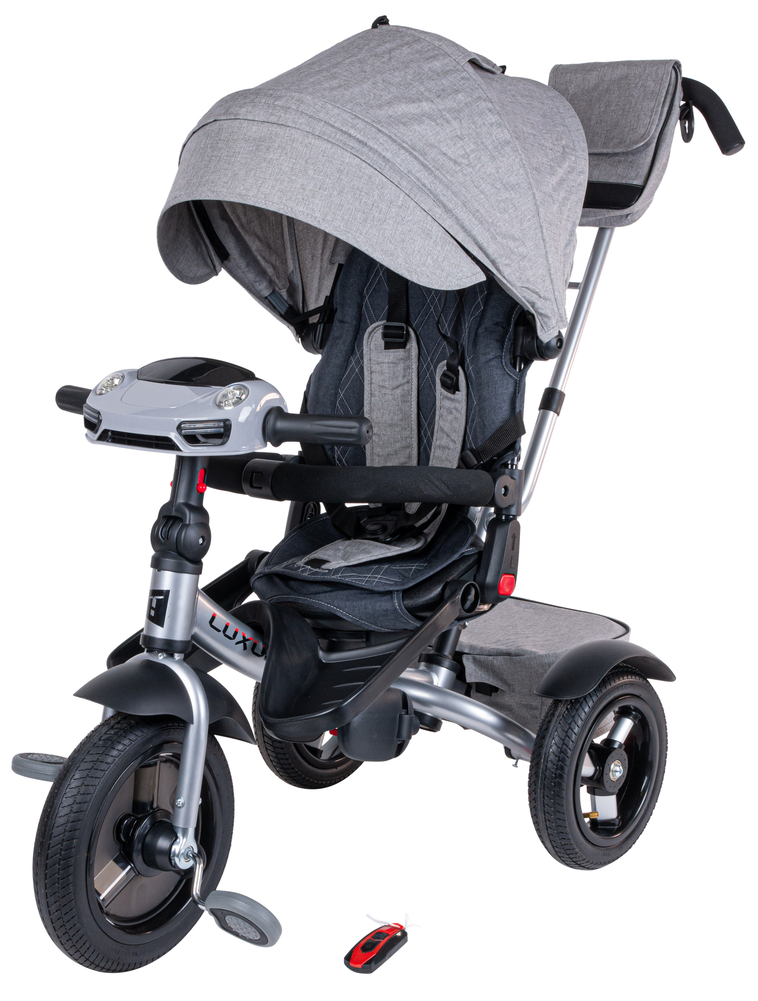 Трёхколесный велосипед/коляска с ручкой TechTeam Luxury, cерый