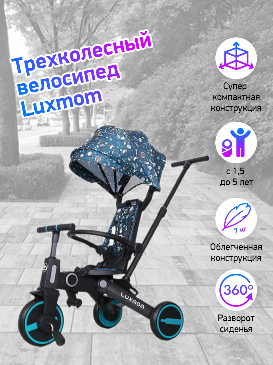 Трехколесный велосипед Luxmom 368 складной, поворот сидения, синий