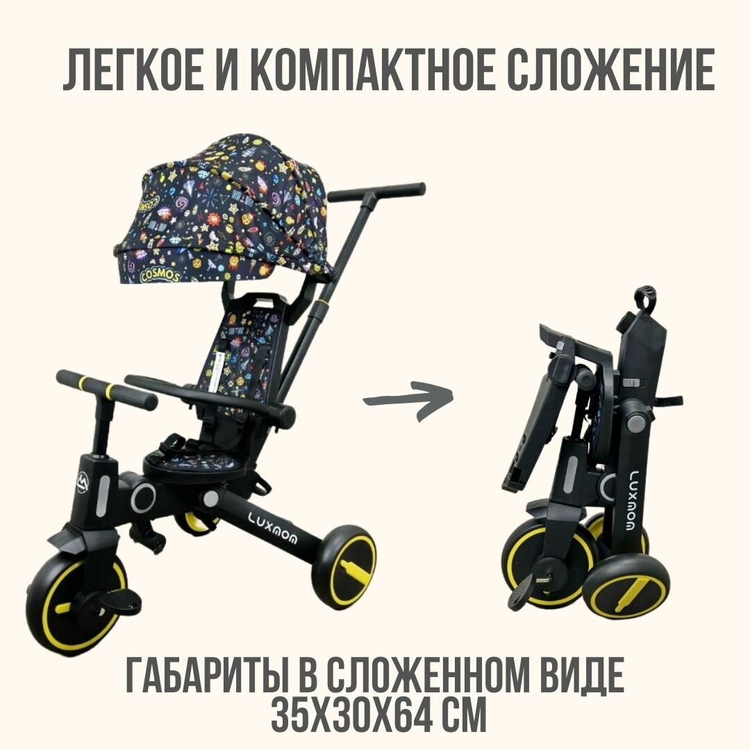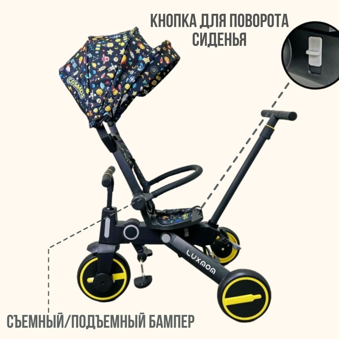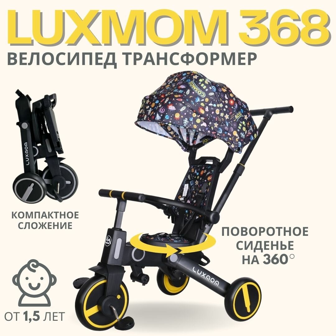 Трехколесный велосипед LUXMOM ORIGINAL 368 складной, поворот сидения, желтый
