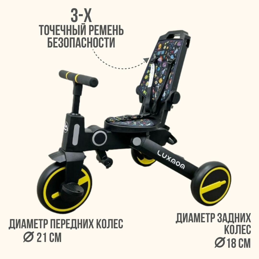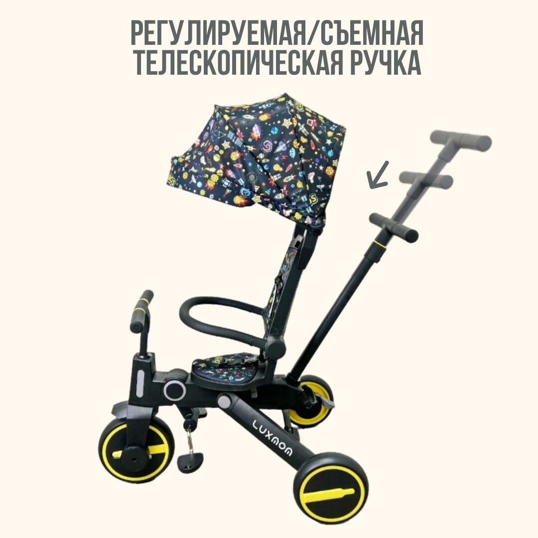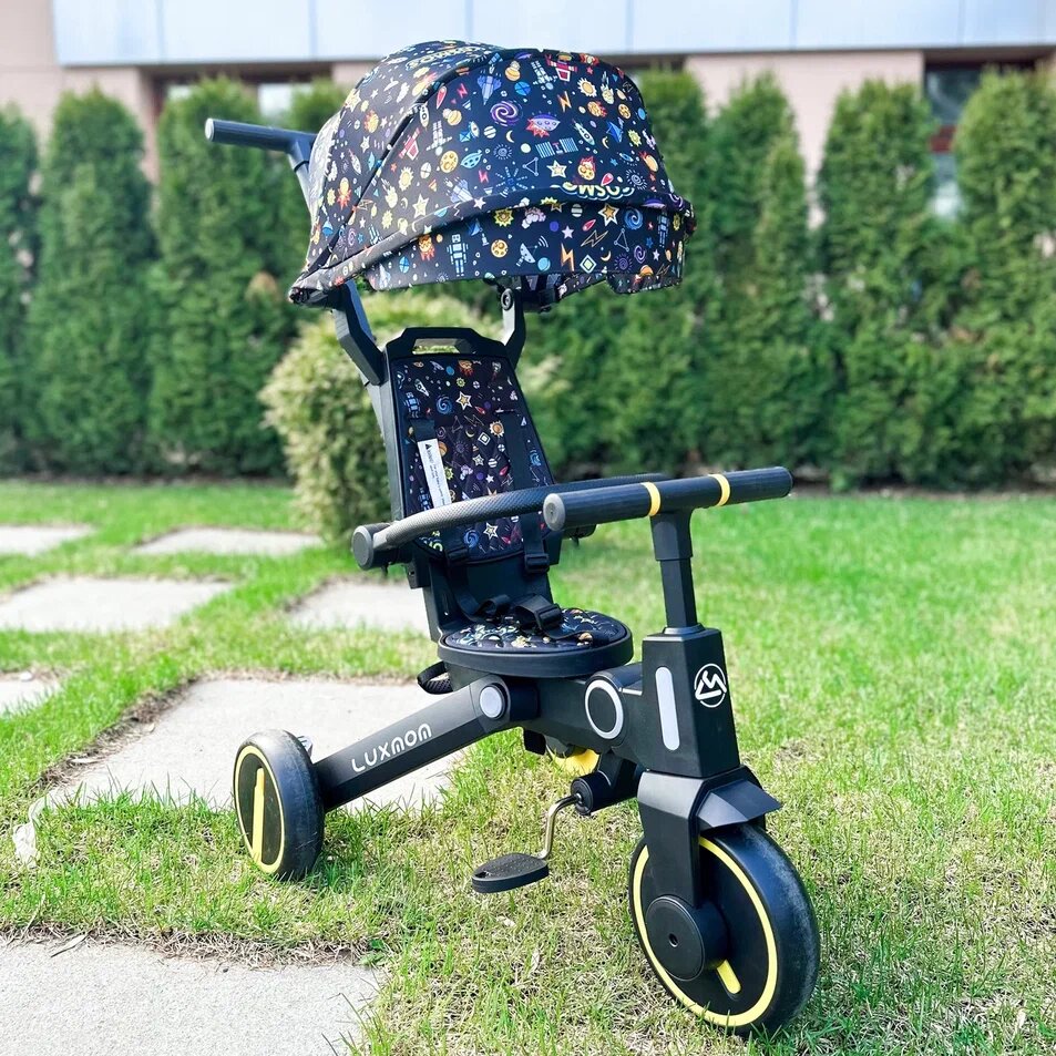 Трехколесный велосипед LUXMOM ORIGINAL 368 складной, поворот сидения, желтый