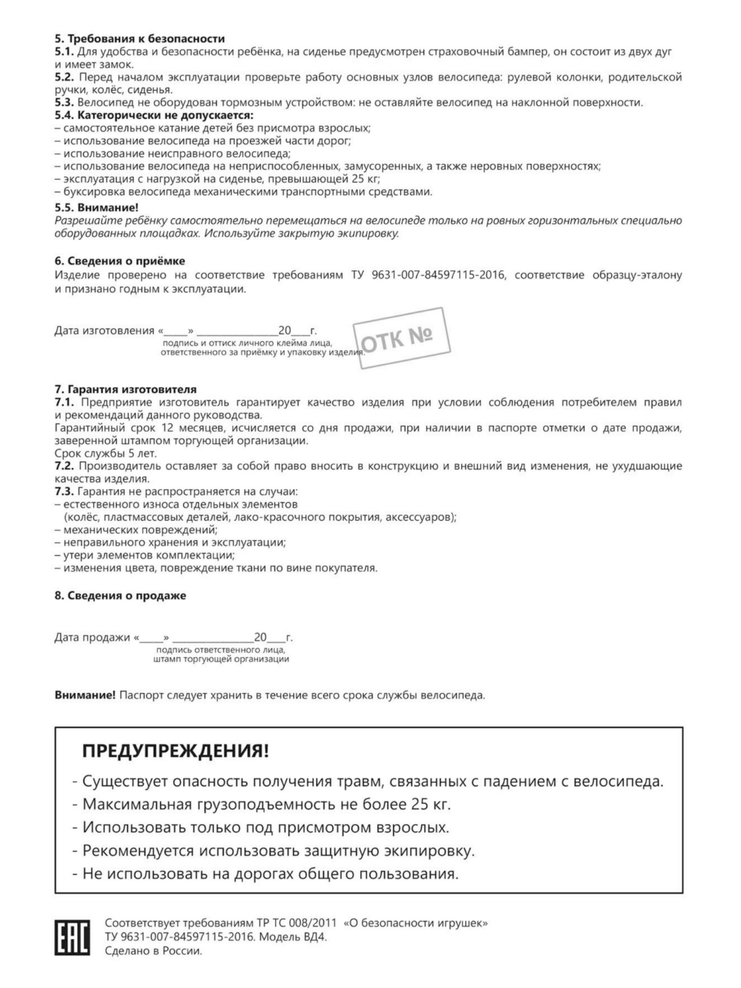 | Особенности конструкции | задние крылья / мягкое сиденье / переднее крыло / подставки для ног / регулировка сиденья / сиденье со спинкой |