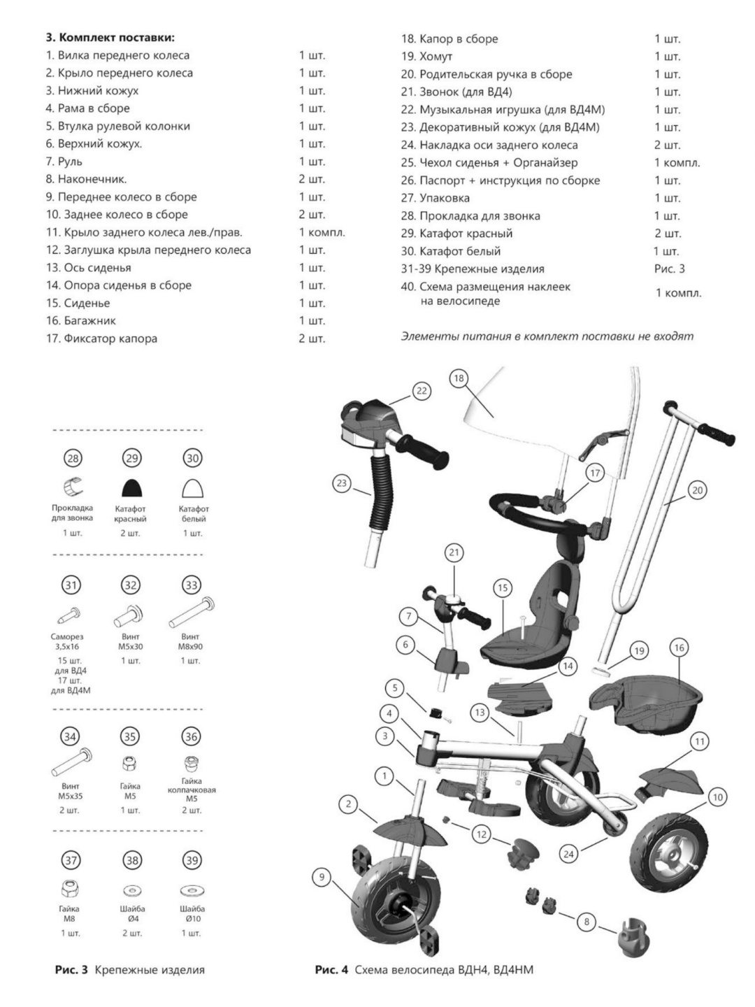 | Аксессуары | задняя корзина / звонок/клаксон / сумка для вещей |
