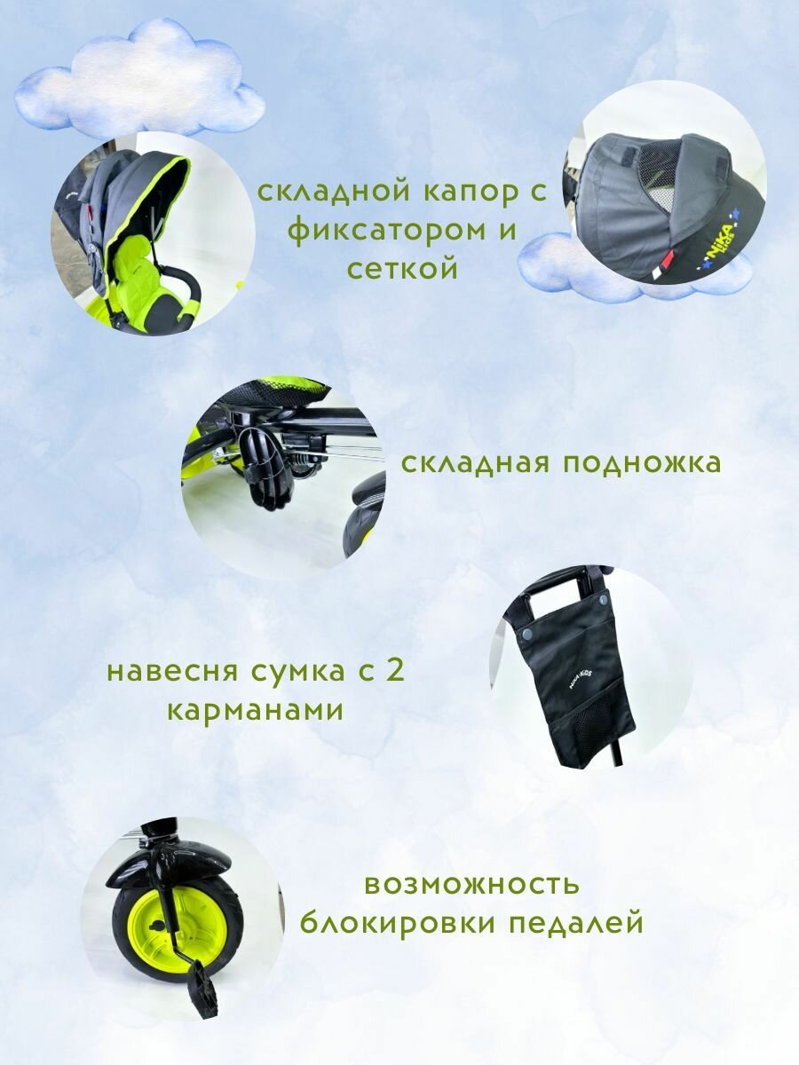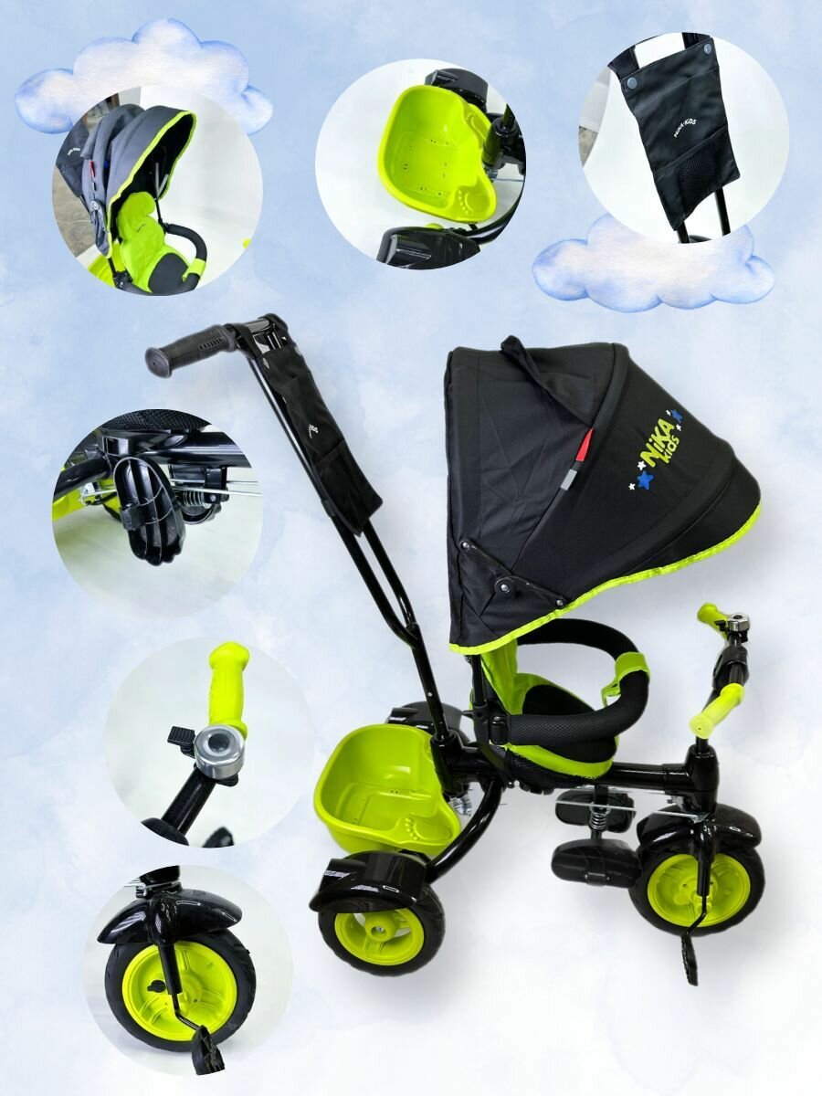 Трехколесный велосипед Nika ВДН4/4 черный с лимонным интересное: