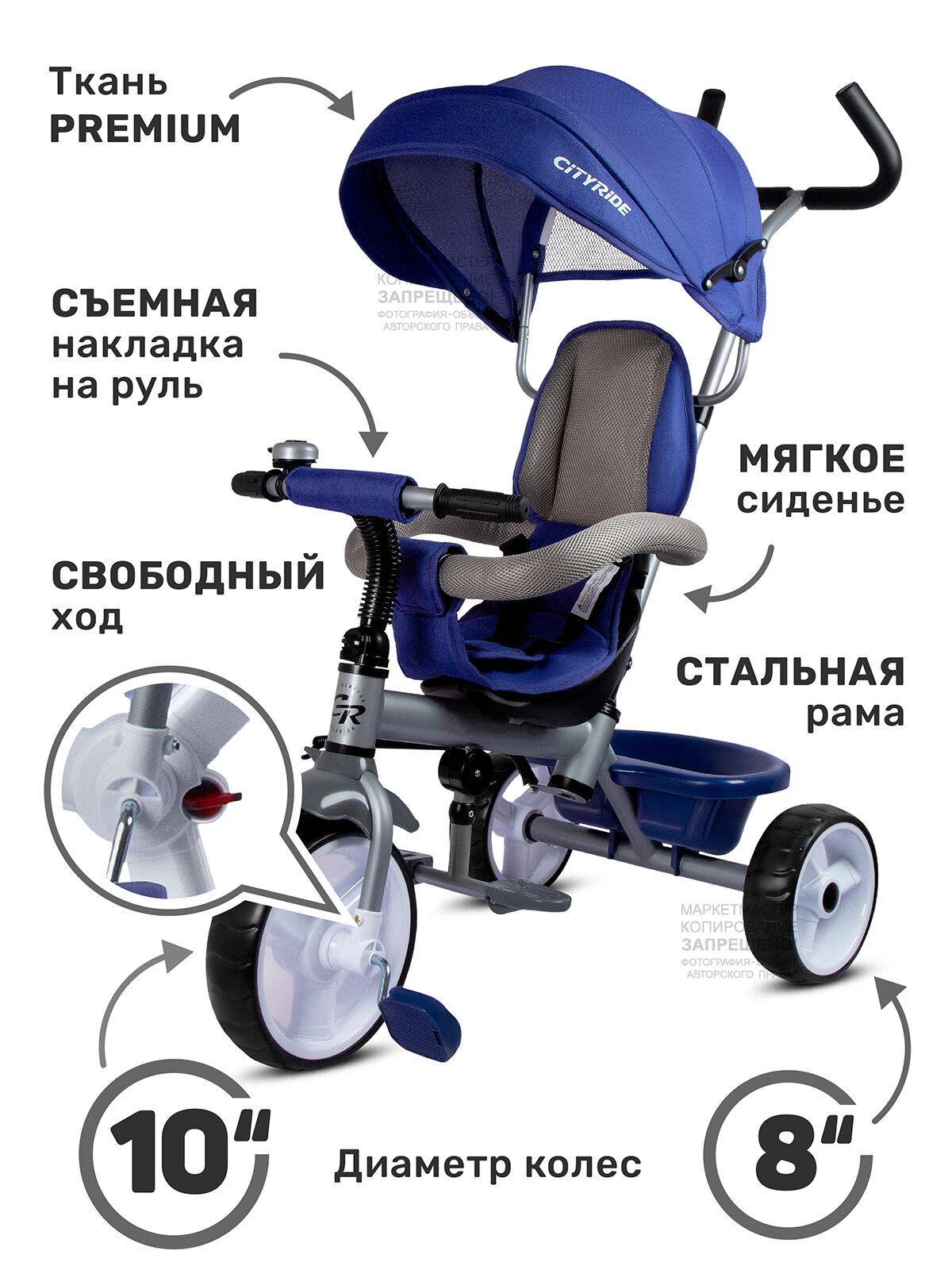 Купить Велосипед детский трехколесный ТМ CITYRIDE, колеса ЕВА 10"/8", мягкое сиденье, родительская ручка, CR-B3-06DBL