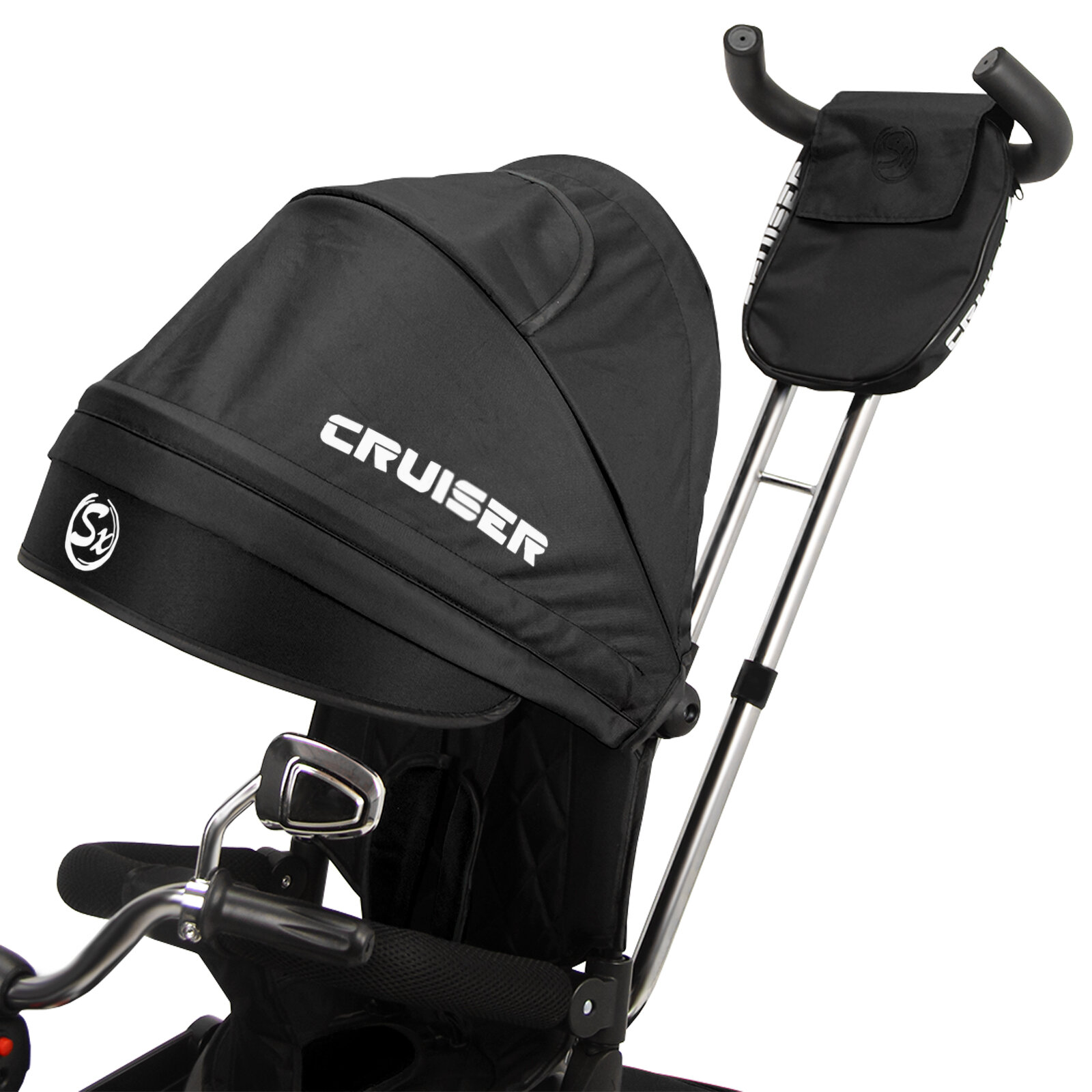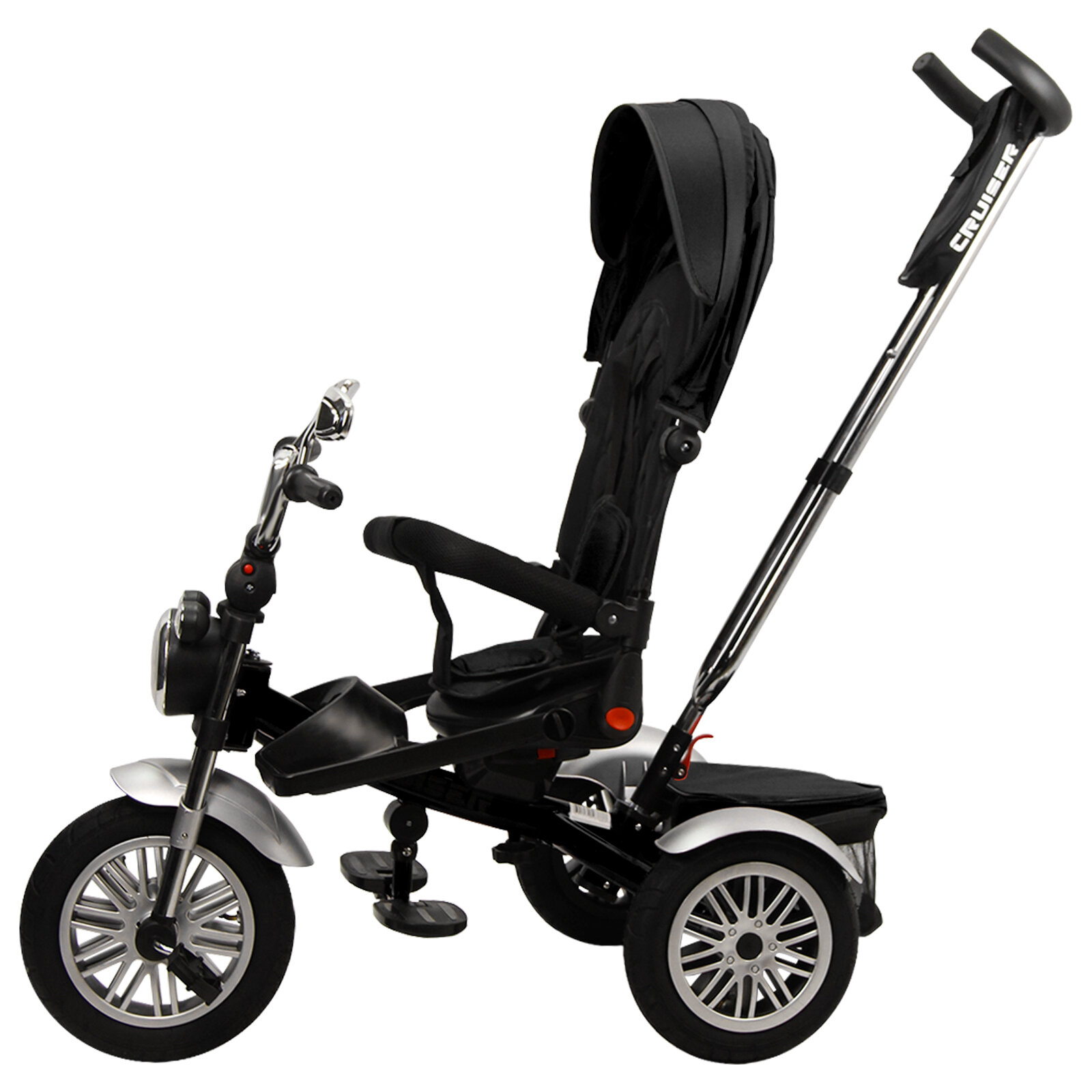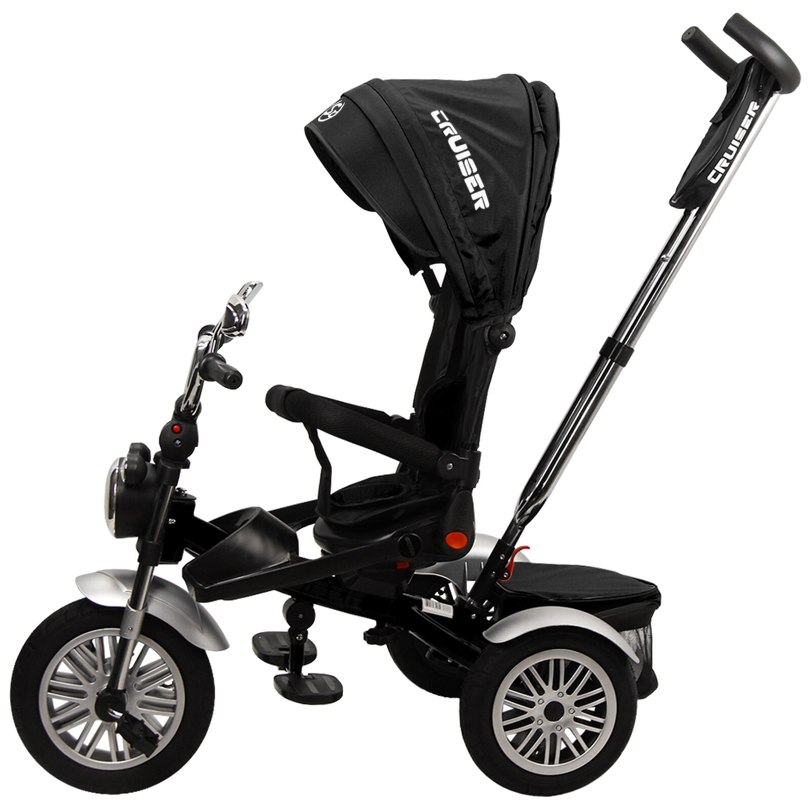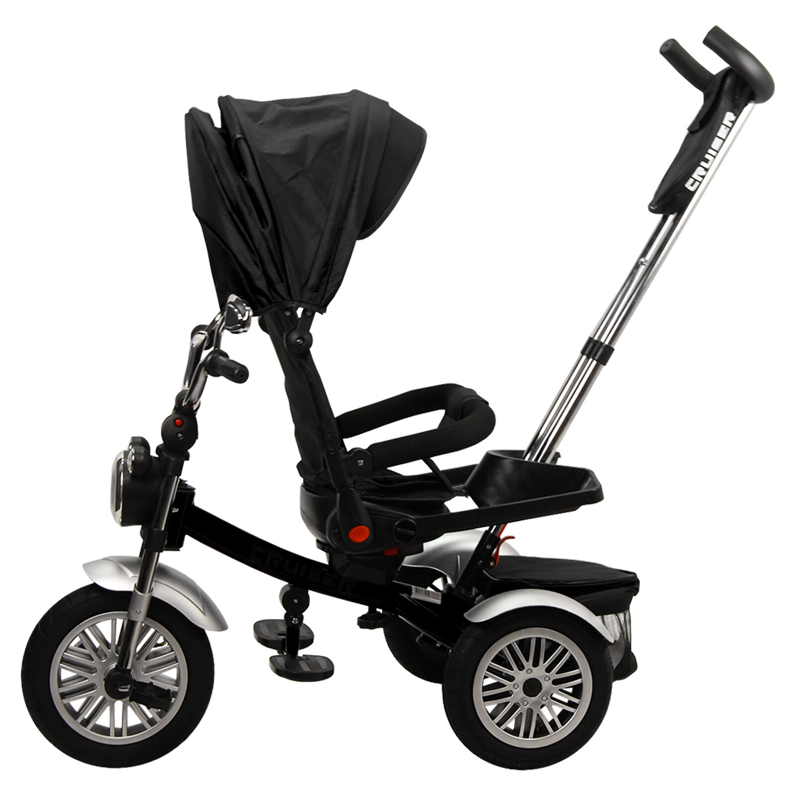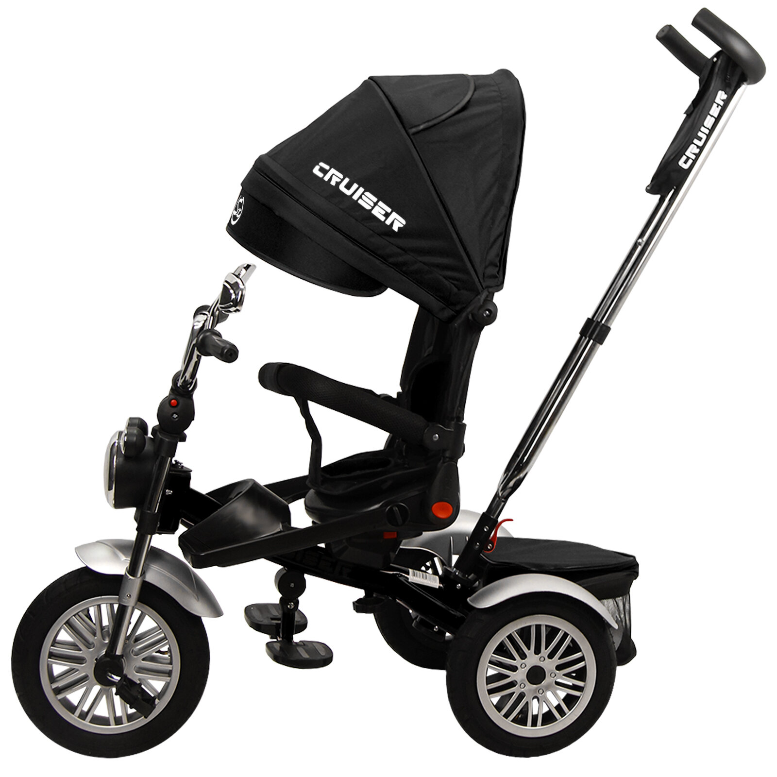 Купить Велосипед трехколесный детский с ручкой и козырьком Cruiser, 1-4 года, черный