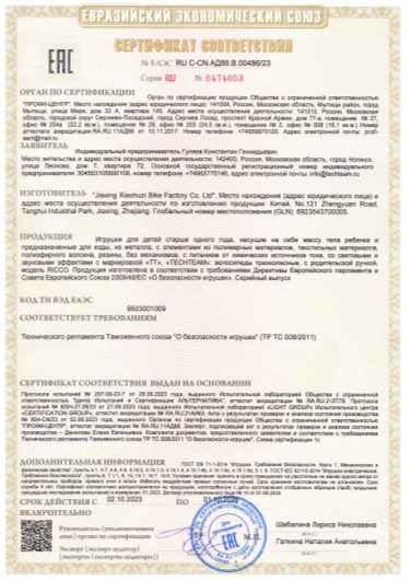 | Дополнительная информация | Поворотное на 180° сиденье, ручка-толкатель регулируется по высоте, регулируемая по наклону спинка сидения, электронный блок со звуком и светом, подножки базовые и дополнительные съемные |