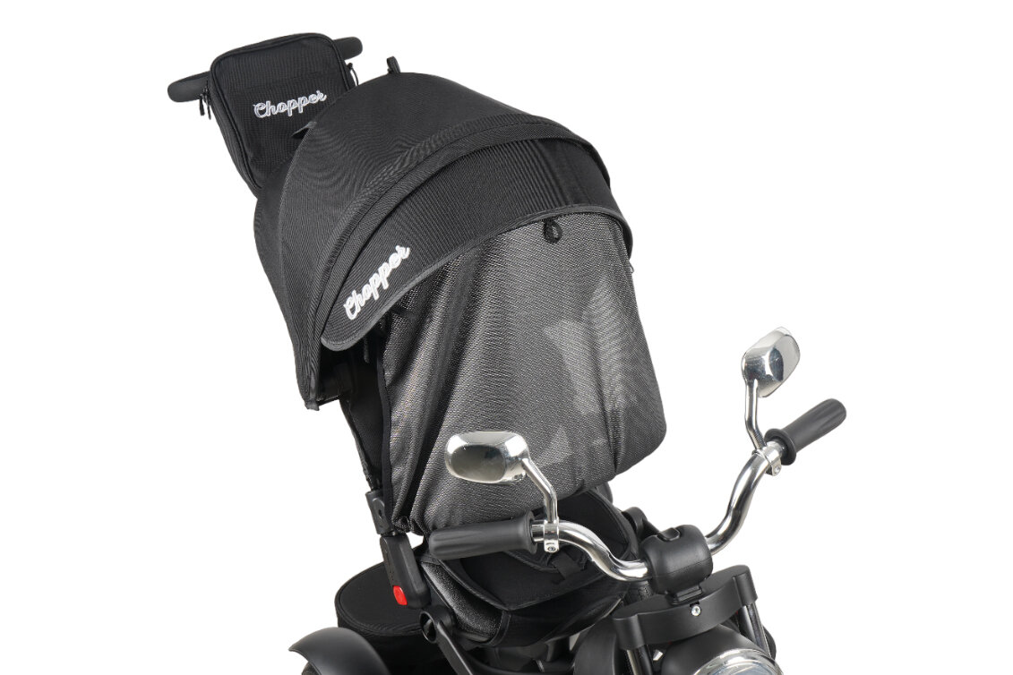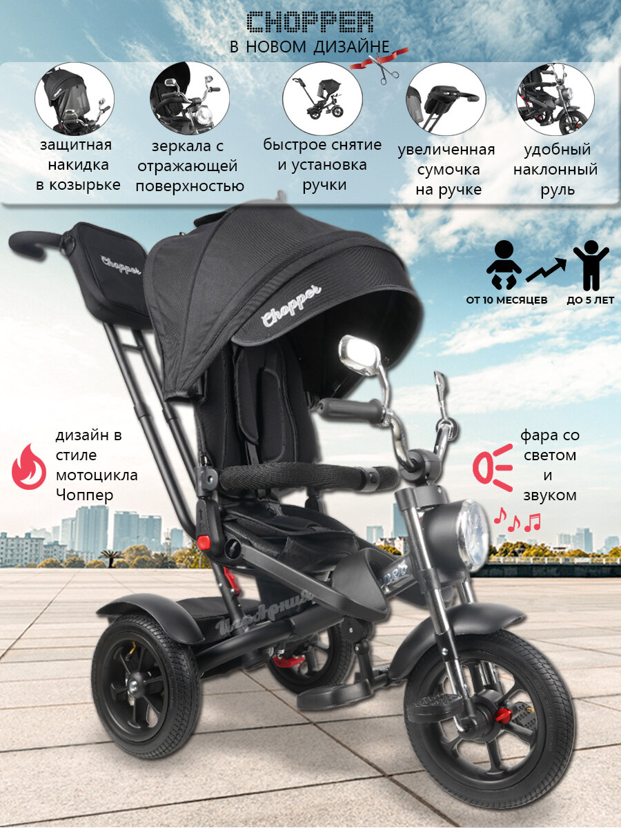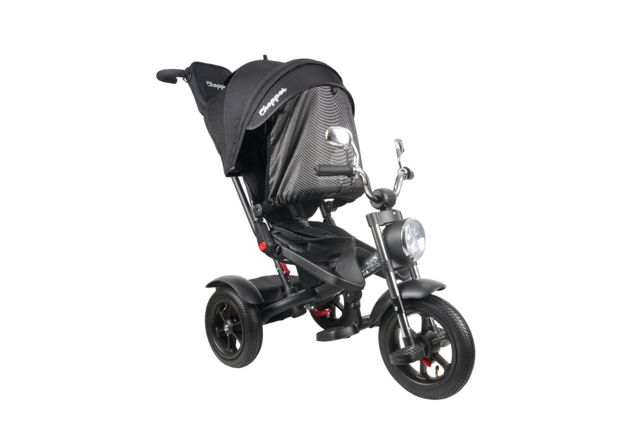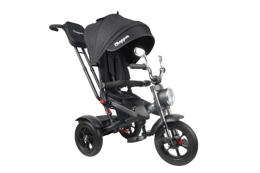 Велосипед трехколесный Chopper CH1-1 с фарой и солнцезащитной накидкой, модель 2024 года, черный