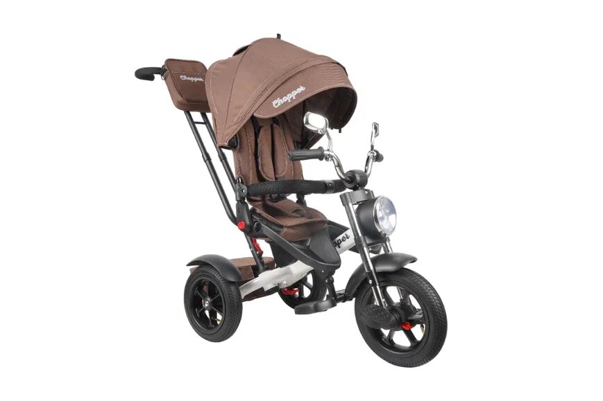 Велосипед трехколесный Chopper CH1-1 с фарой и солнцезащитной накидкой, модель 2024 года, коричневый