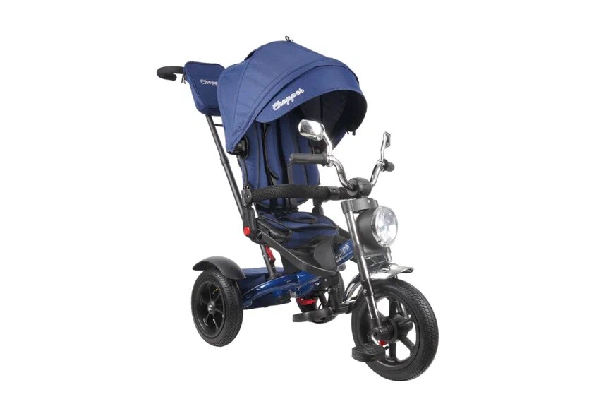Велосипед трехколесный Chopper CH1-1 с фарой и солнцезащитной накидкой, модель 2024 года, синий