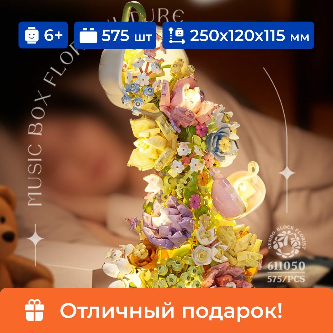 СохранитьКонструктор цветочная композиция "Цветочный чай" Sembo Block, музыкальный с подсветкой, для девочек, 575 деталей, совместим с моделями других известных брендов интересное: