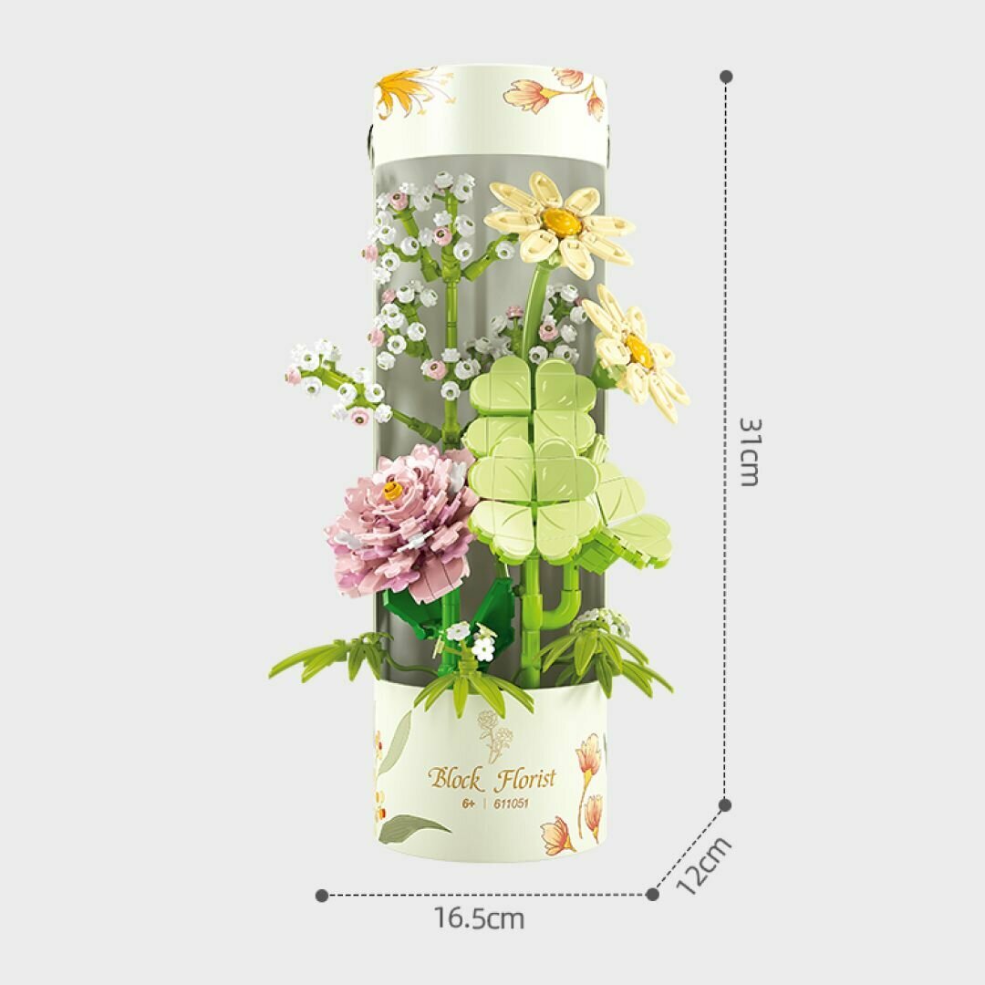 Конструктор цветочная композиция "Уют дома" Sembo Block, в тубе, для девочек, 565 деталей, совместим с моделями других известных брендов
