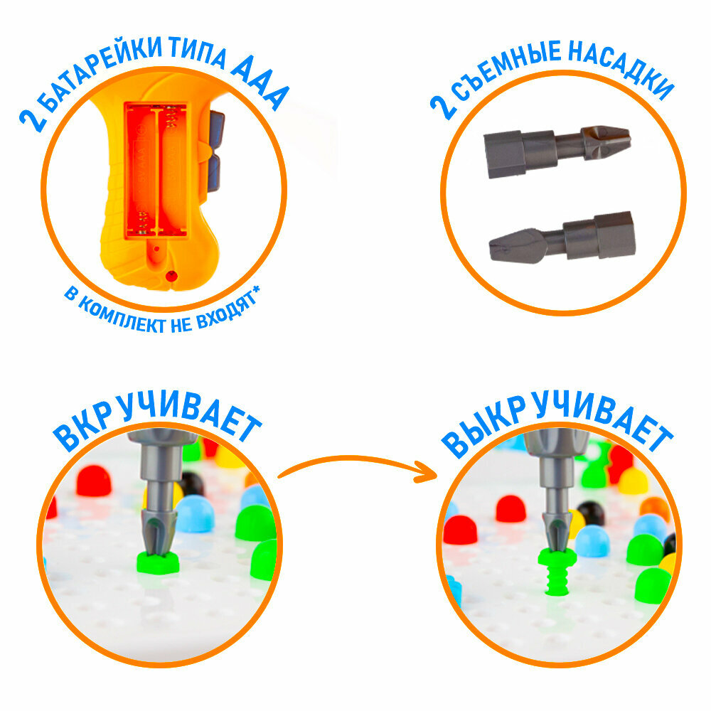 Купить Развивающий 3D конструктор-мозаика с шуруповертом на батарейках