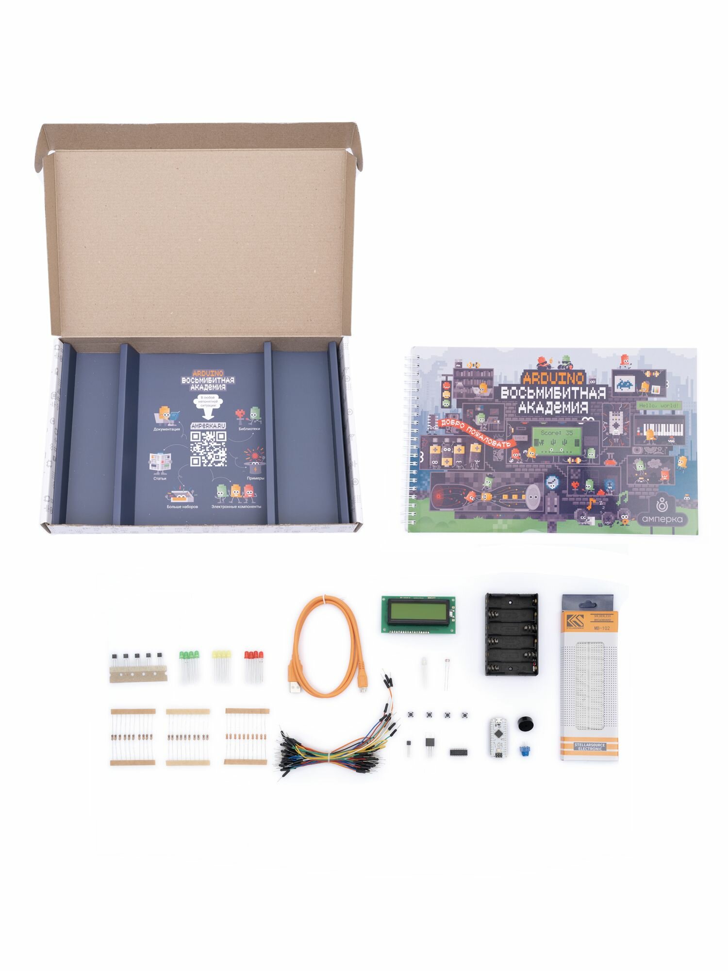 Купить Электронный программируемый конструктор "Восьмибитная академия" (программирование в среде Arduino IDE для начинающих), 64 научных опыта для детей от 12 лет, 128 деталей