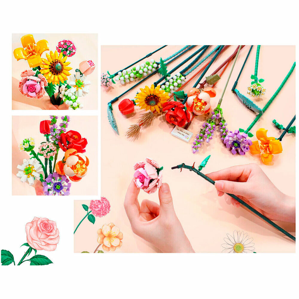 Конструктор LOZ mini Прекрасный вечный цветок для тебя - летний букет 568 деталей NO. 1659 Summer bouquet Eternal flower Series