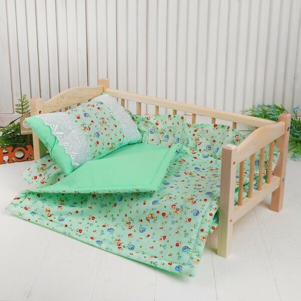 Кукольное постельное Цветочки на зелёном, простынь, одеяло 46х36 см, подушка 27х17 см 4529174 . интересное: