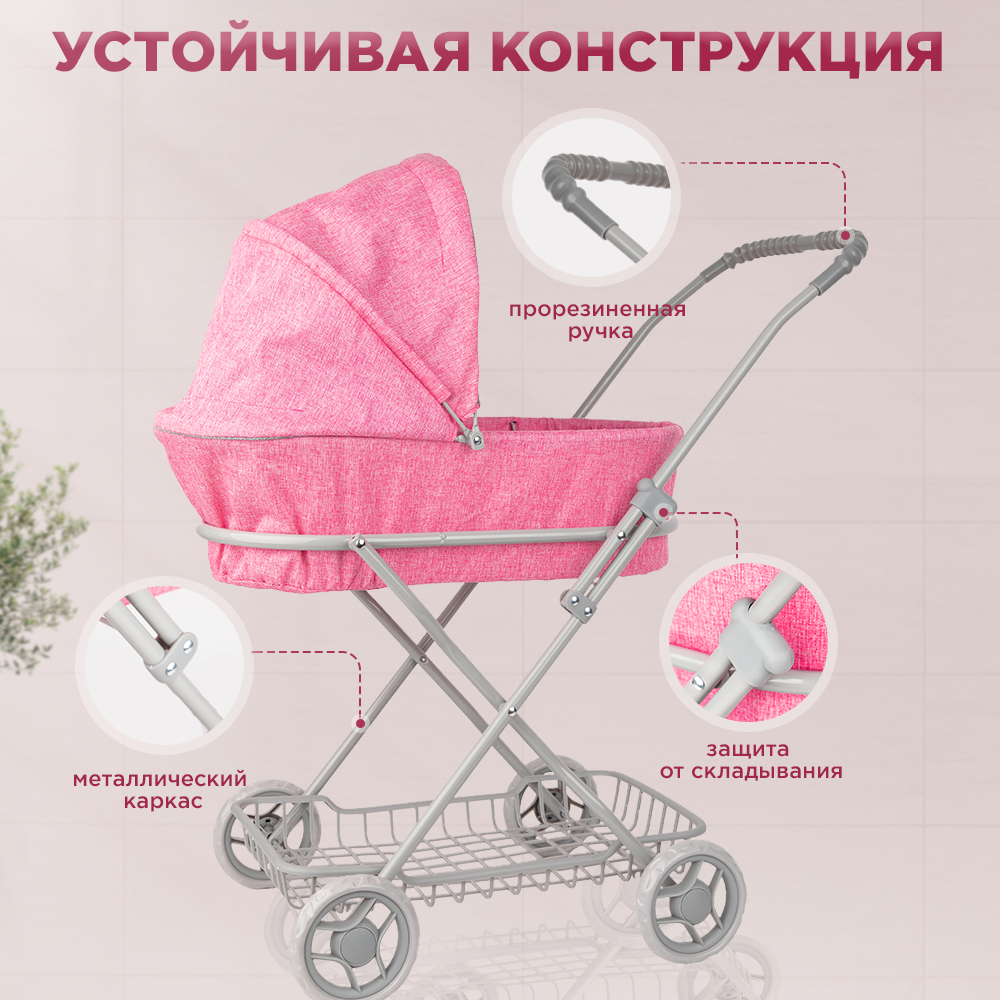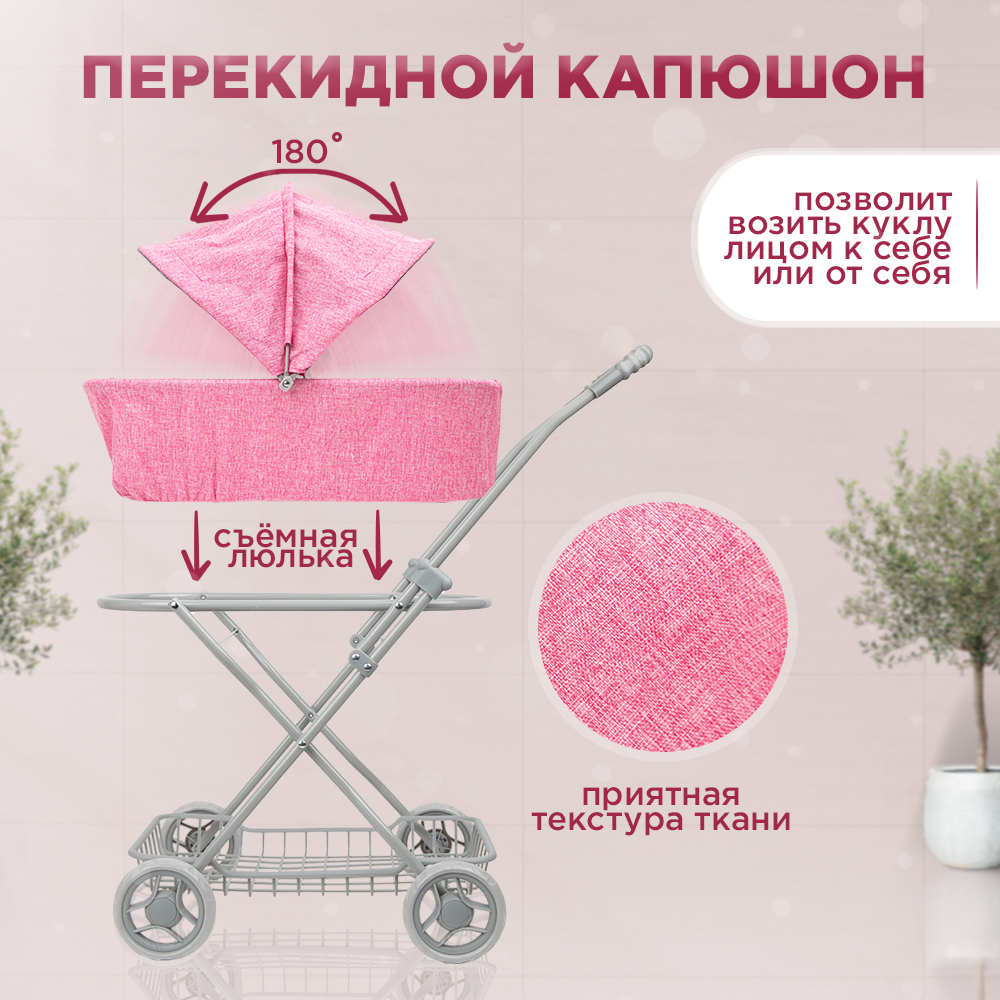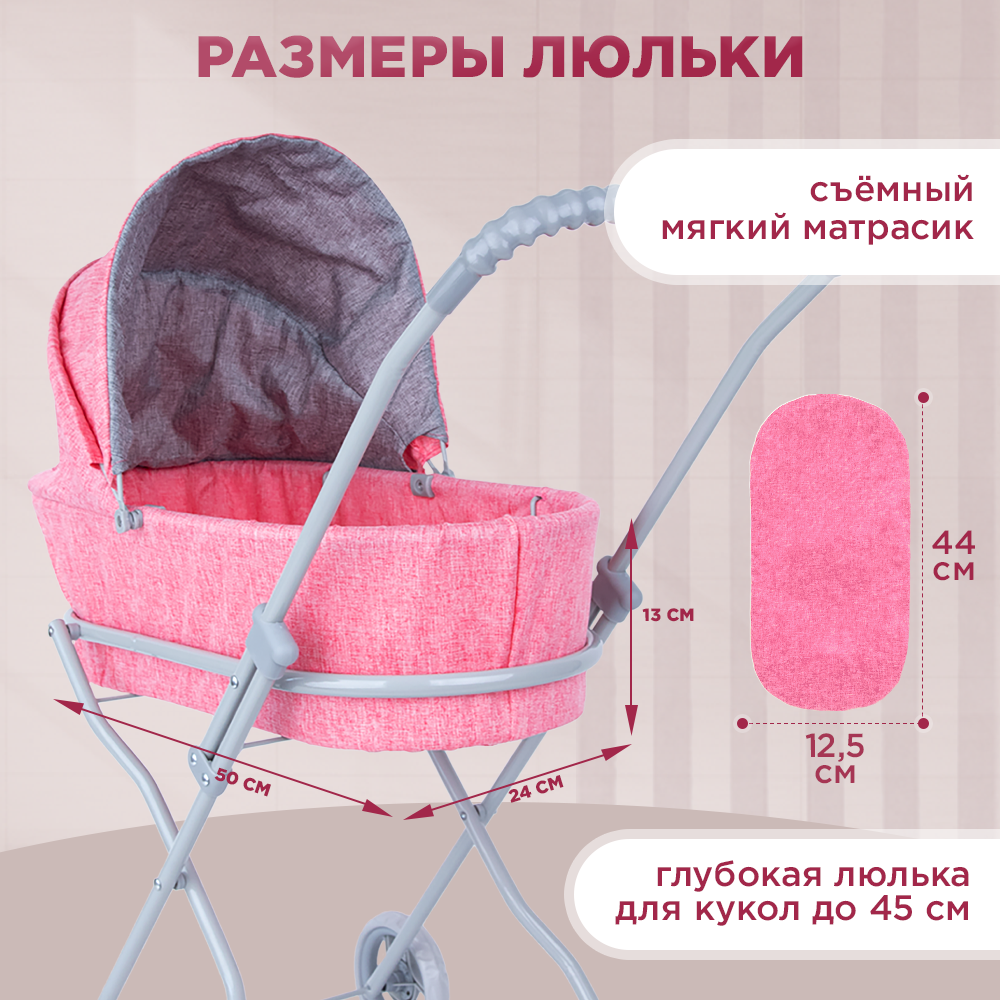 Коляска Люлька для кукол до 42см, металлическая с сумкой и сеткой интересное: