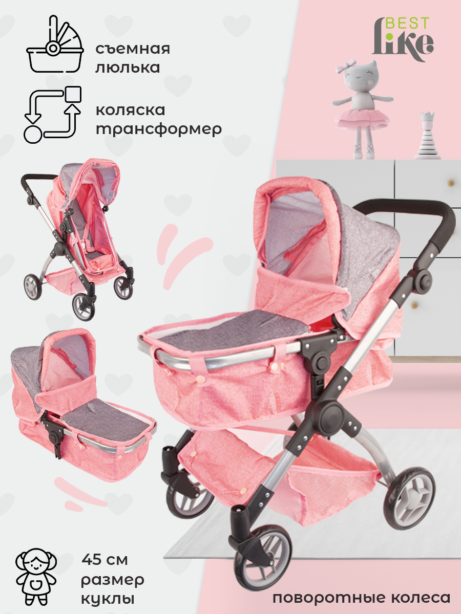 Коляска Трансформер 2в1, розово-серая, металлическая интересное: