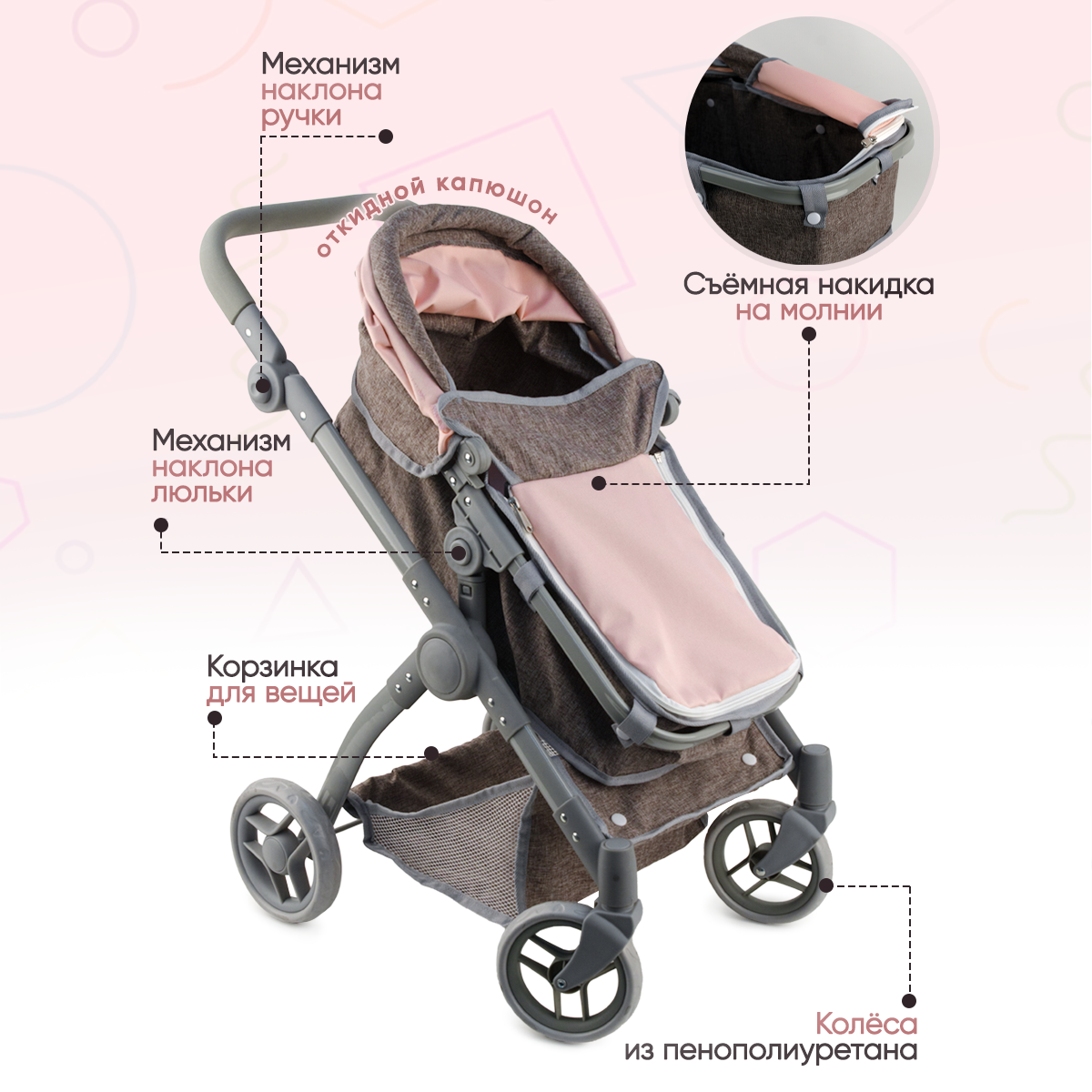Коляска Трансформер 2в1, розово-серая, металлическая
