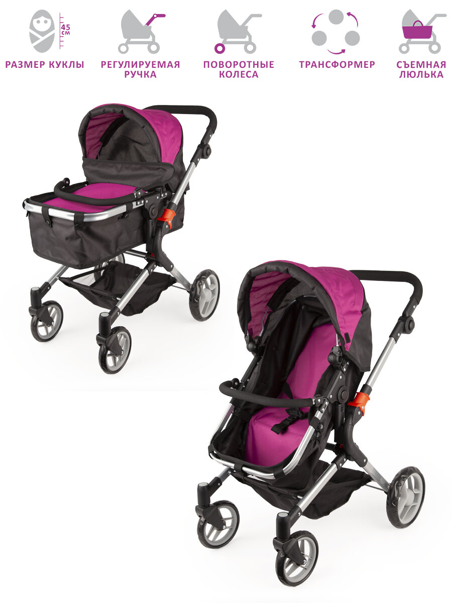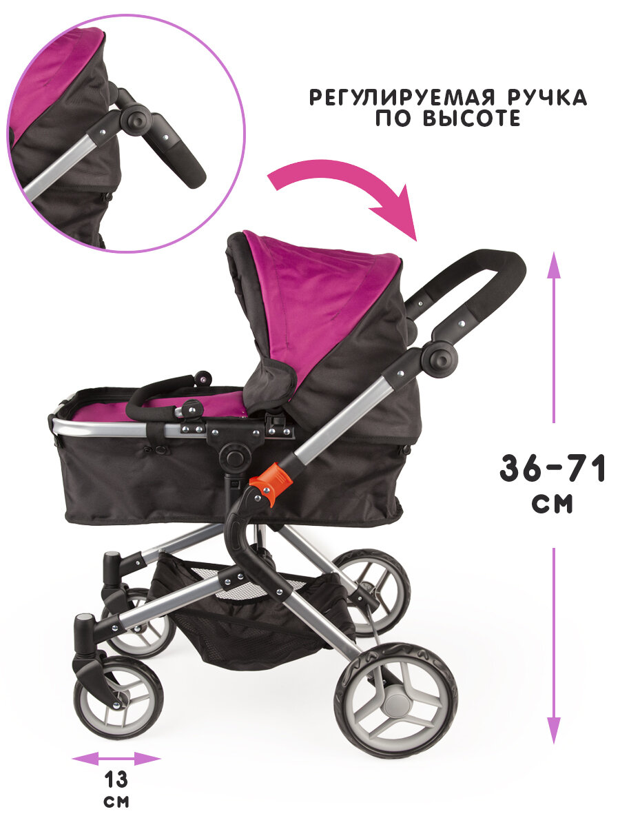 Коляска для кукол до 50см, Трансформер 2в1, с корзиной