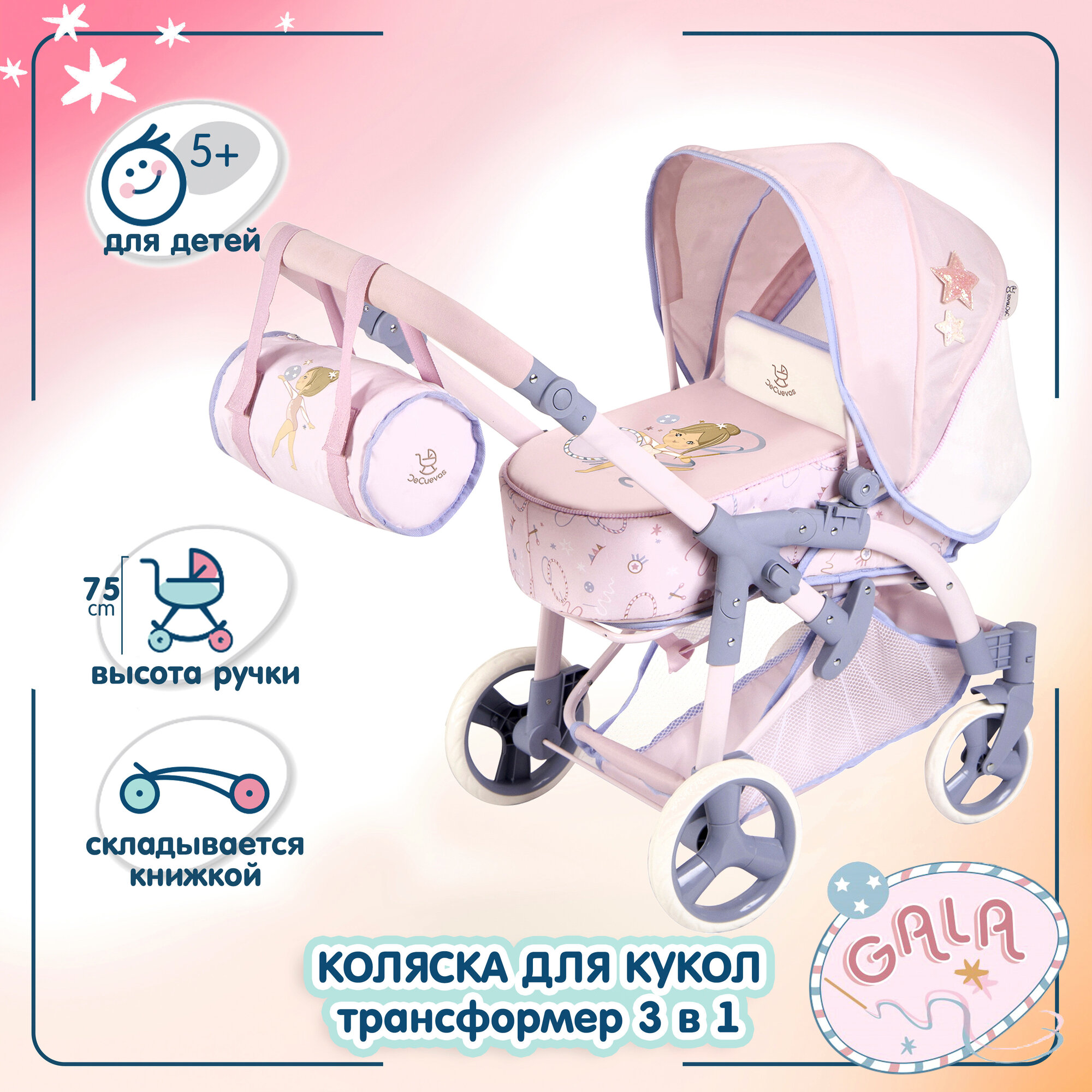 Сохранить81651 Коляска для кукол трансформер 3 в 1 с сумкой, высота ручки 75 см, серия Гала интересное:
