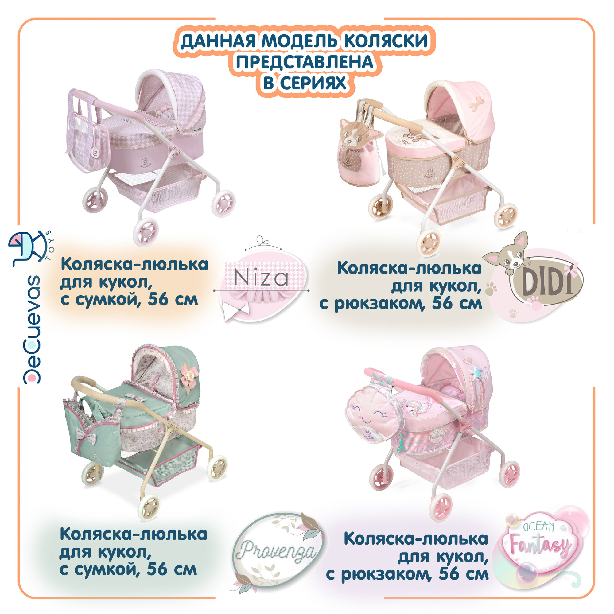 Коляска-переноска 86143 DeCuevas Toys 2 в 1 для игрушки с аксессуарами, 56 см, серия Диди