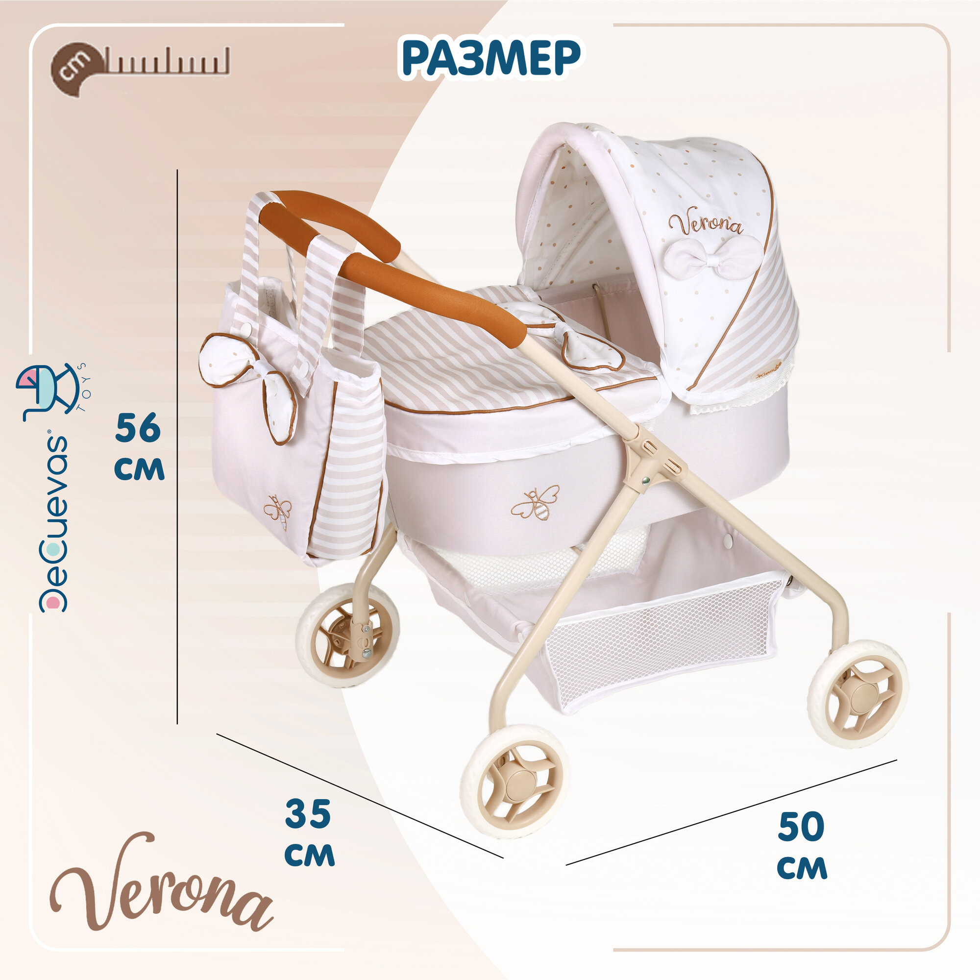 Коляска для кукол люлька с сумкой DeCuevas Toys, высота ручки 81 см, серия "Верона" 80078