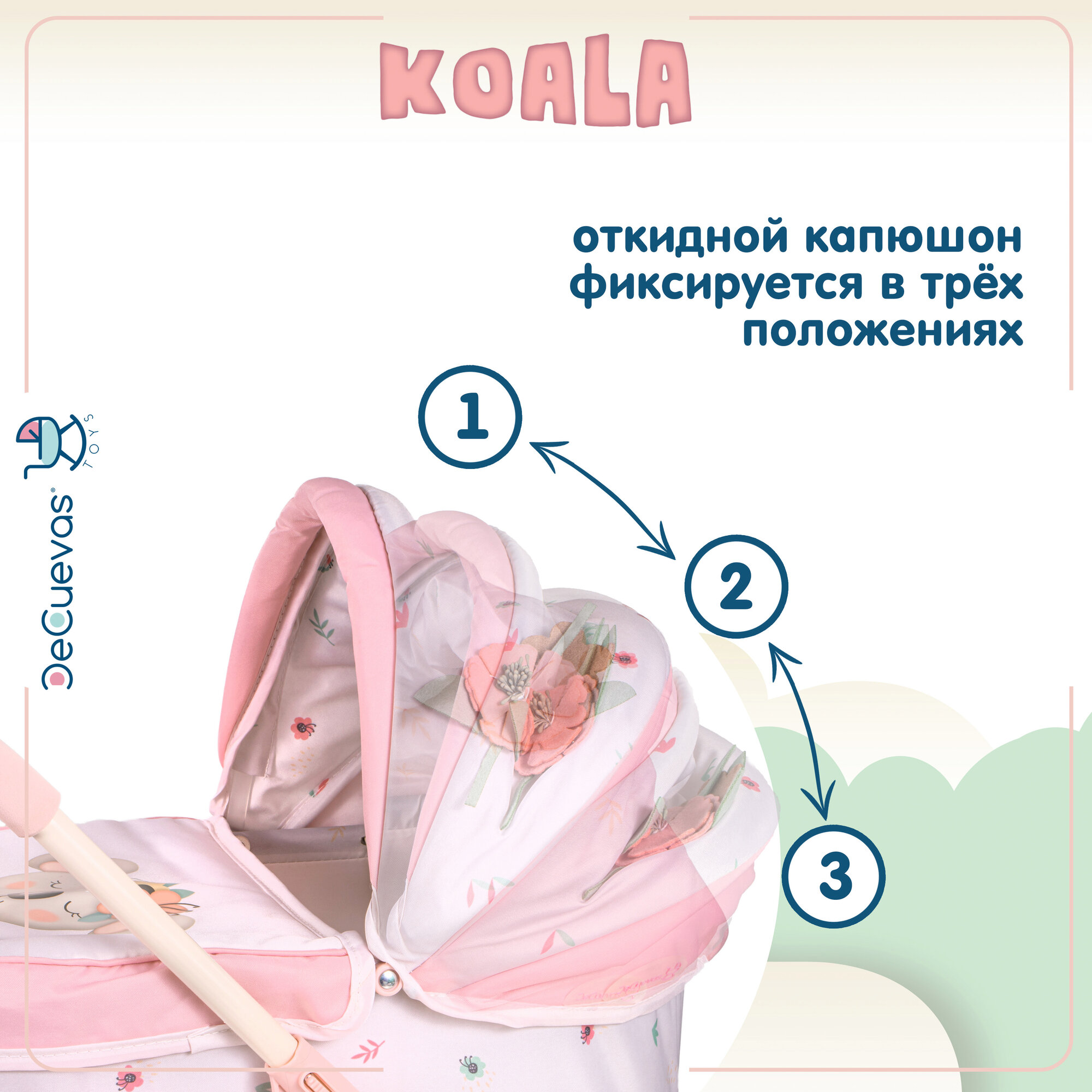 Коляска для кукол люлька с сумкой DeCuevas Toys, высота ручки 81 см, серия "Коала" 80079