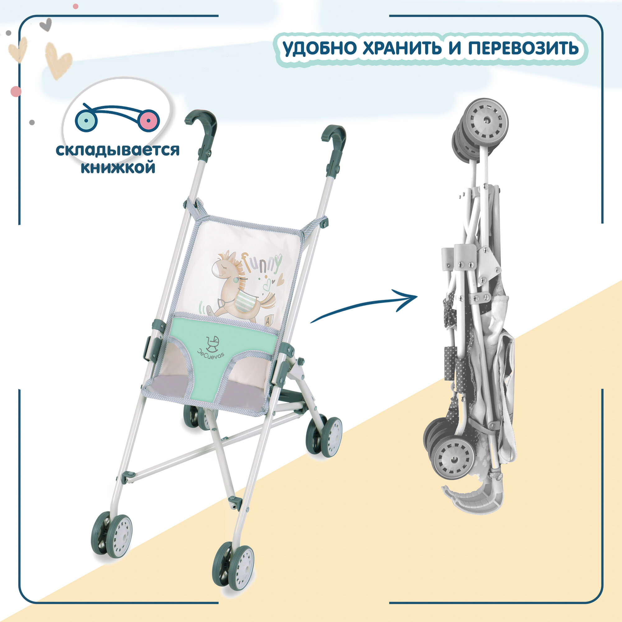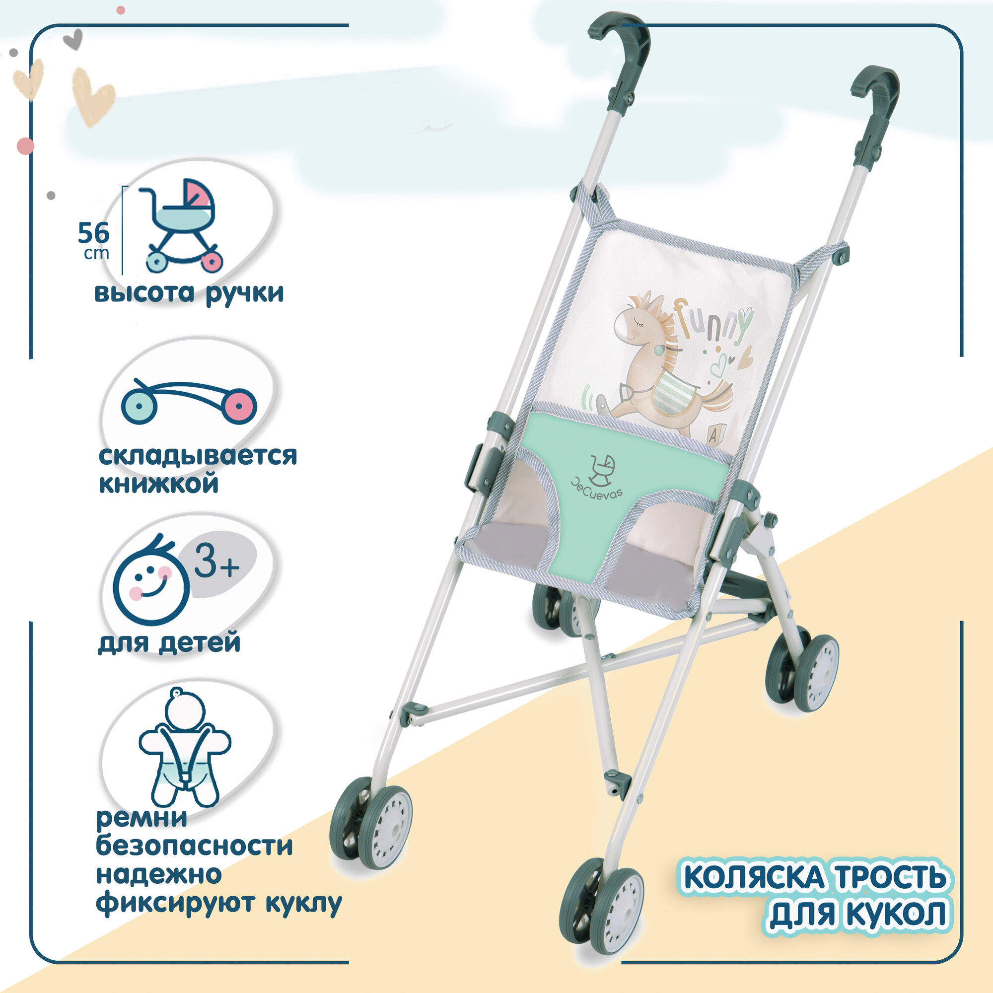 Сохранить90082 Коляска для кукол трость зеленая, высота ручки 56 см, серия Фанни интересное: