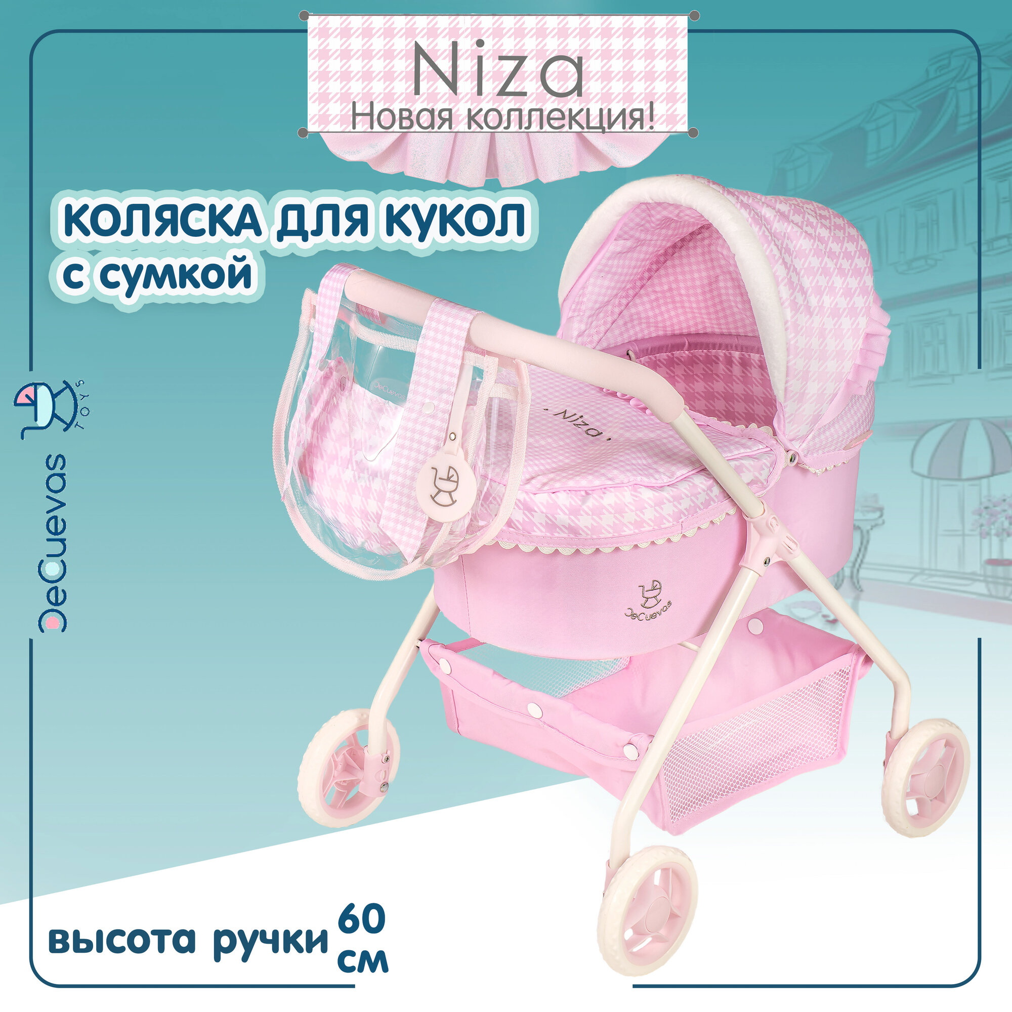 Купить Коляска для кукол люлька DeCuevas Toys 86046, с аксессуарами съемной прозрачной сумкой и зонтом, высота ручки 56 см, серия Ницца, классический дизайн