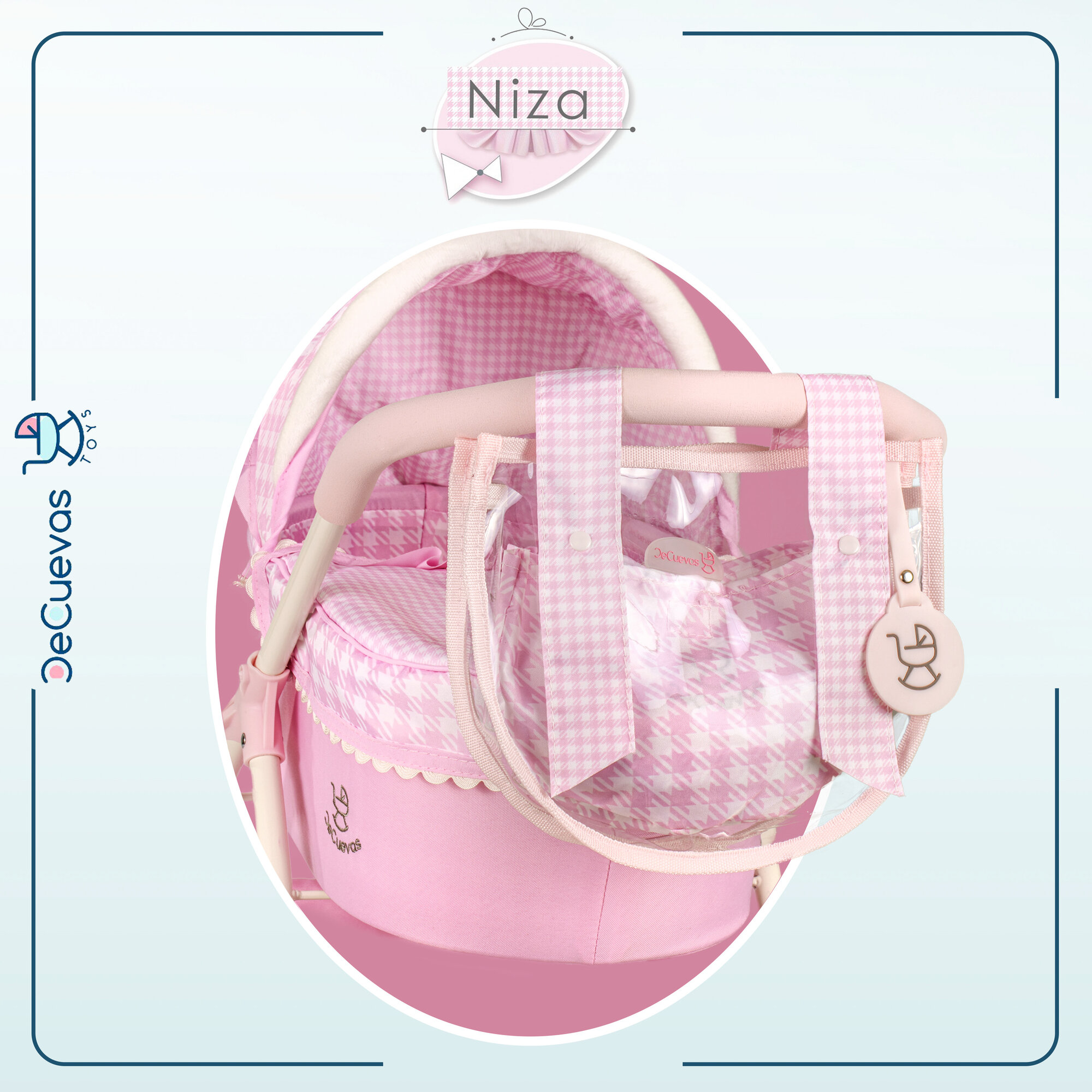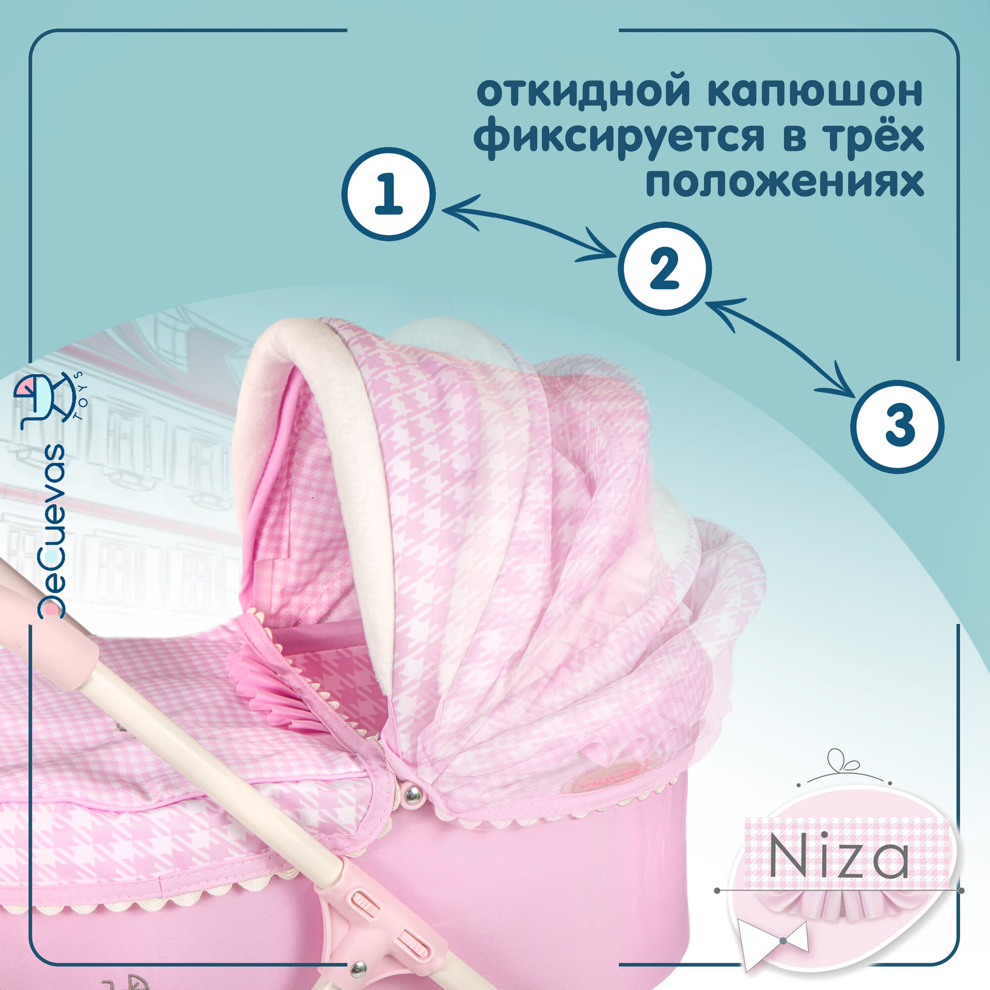 Коляска для кукол люлька DeCuevas Toys 86046, с аксессуарами съемной прозрачной сумкой и зонтом, высота ручки 56 см, серия Ницца, классический дизайн интересное:
