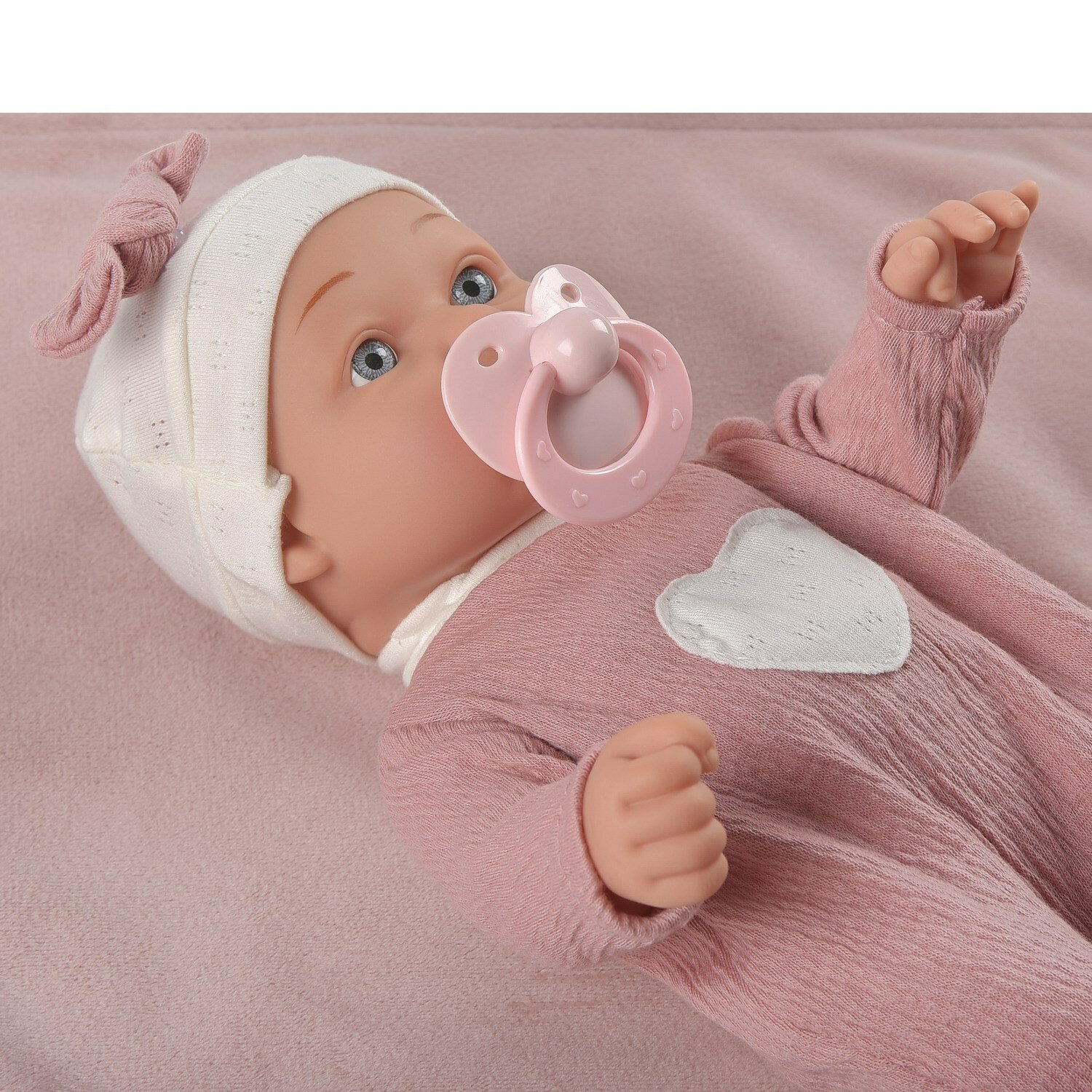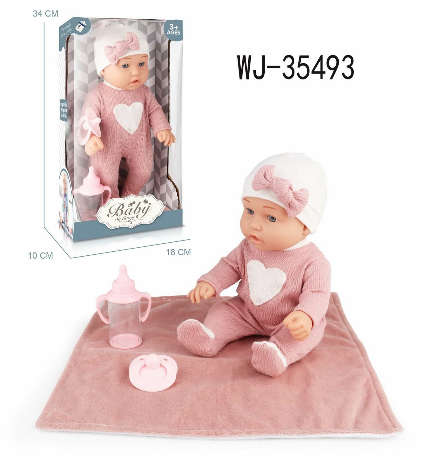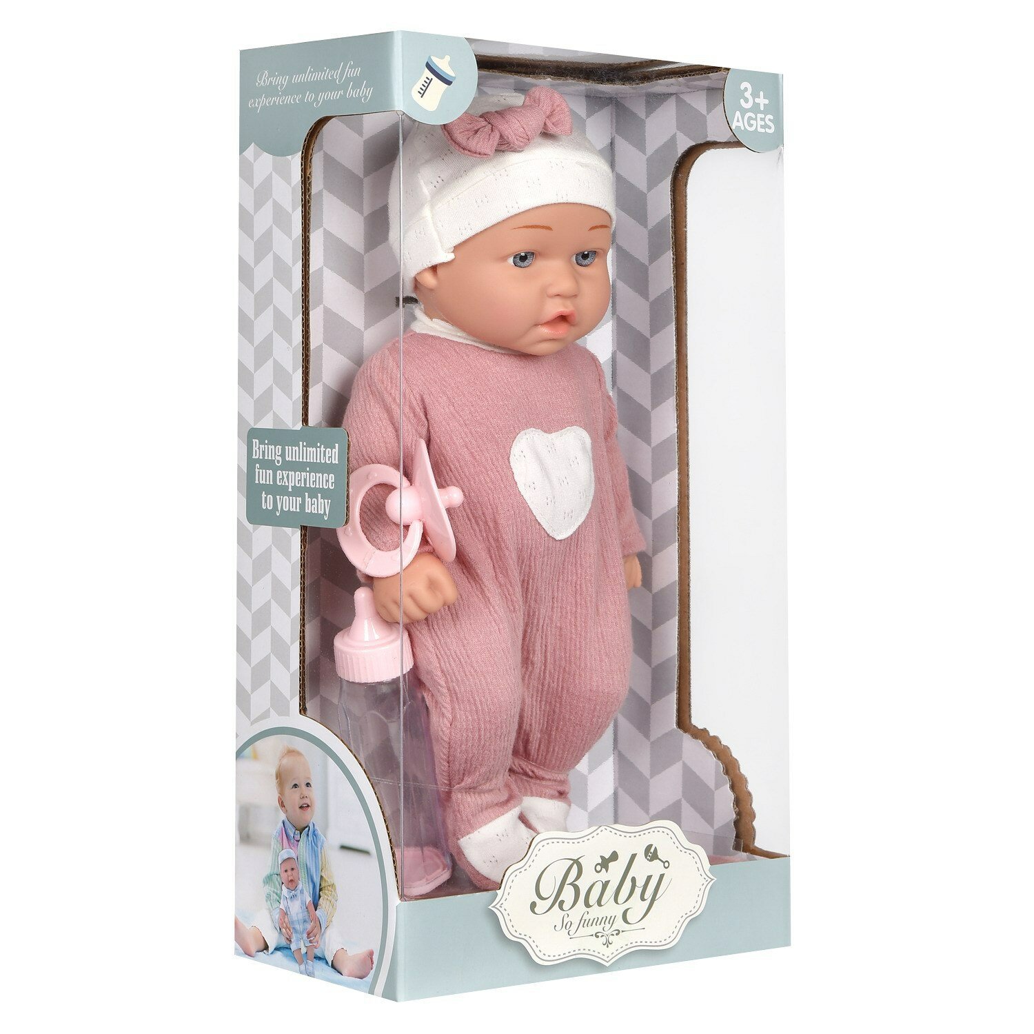 Пупс Junfa Baby So Funny 30 см в комбинезоне с сердечком и шапочке с бутылочкой, соской и ковриком WJ-35493 интересное: